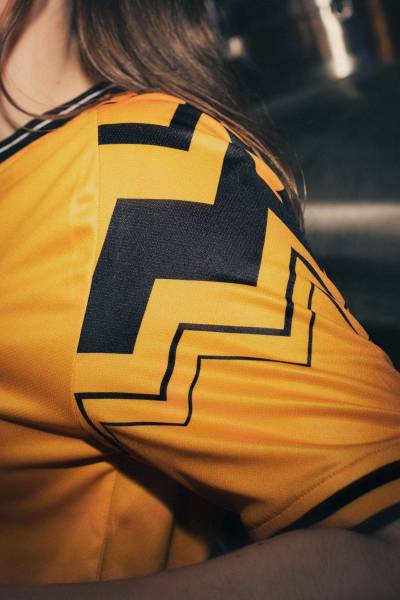 This is the Cambridge United Home kit for the 23/24 season, designed by Umbro, who have integrated an array of geometric and diagonal stripes with varying widths on both sleeve panels.