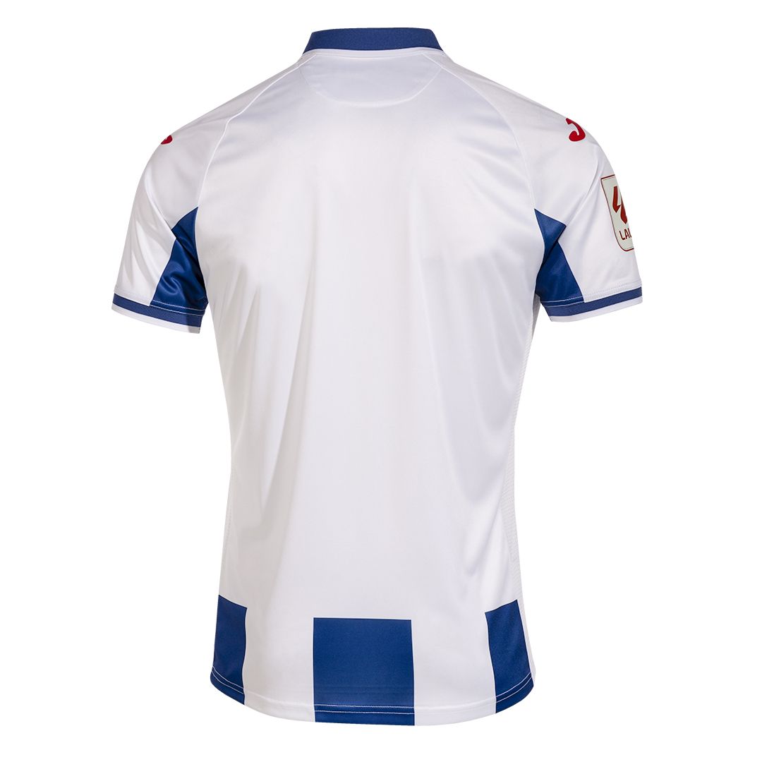The blue-and-white-striped 2023-24-season primary release from Joma has a v-neck-based collar, a full-colour crest and red manufacturer logos, and it nods to the design worn in 1992-93, when Los Peperinos first achieved promotion to professional football.