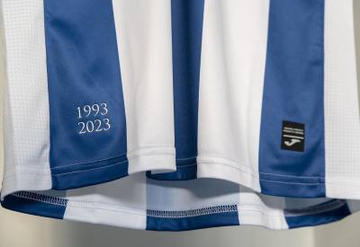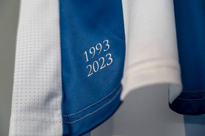 There is a “1993[-]2023” detail near to the hem and the kit will be completed with white shorts and socks.