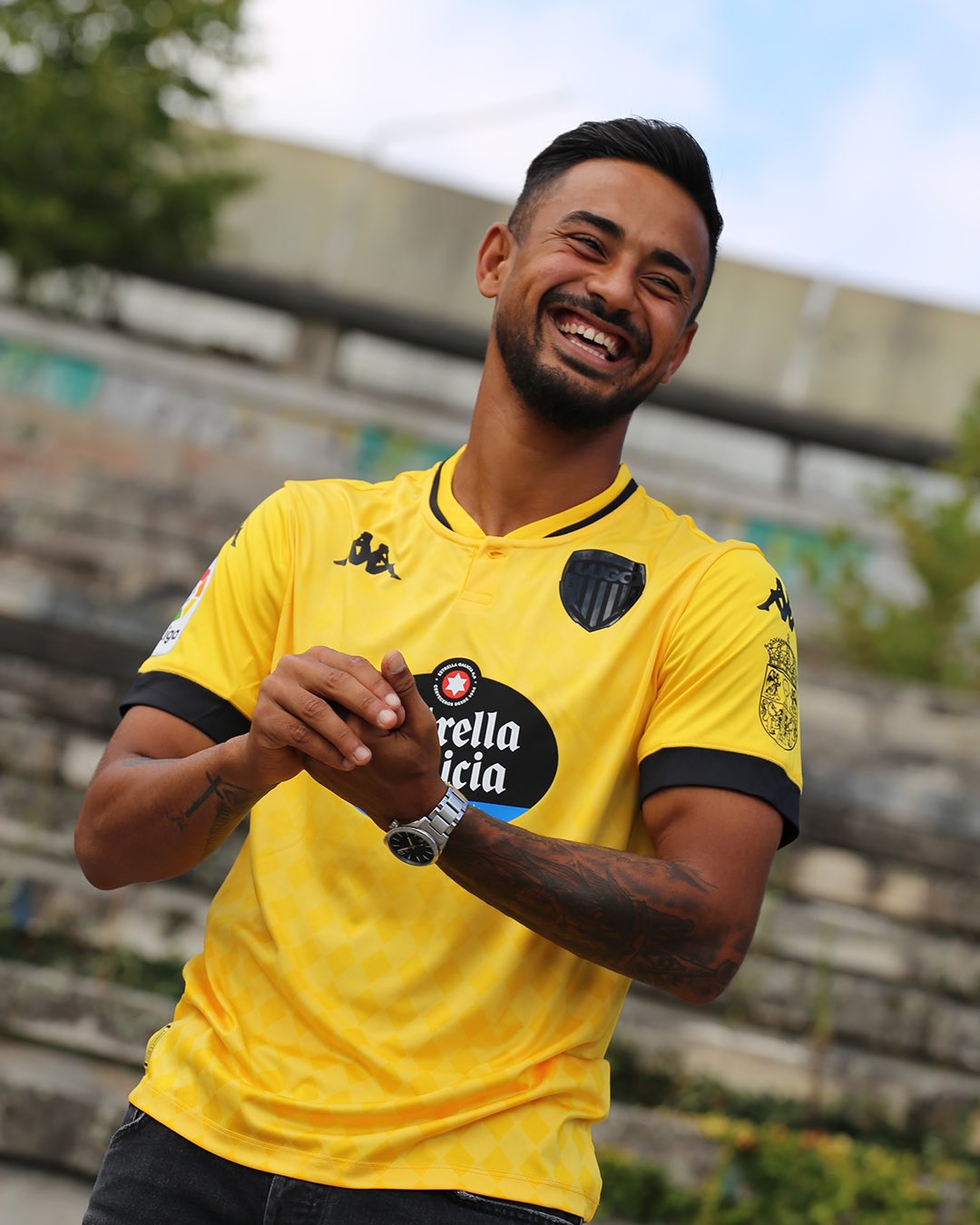 Further colour is added via the Estrella Galicia (non-alcoholic version) sponsor logo and the Galician flag on the upper back.