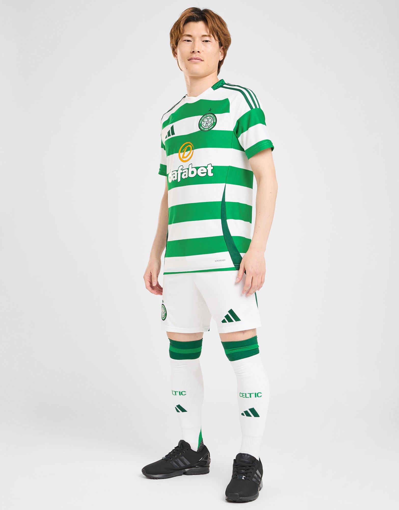 These flashes line up with similar examples on the white shorts, the branding of main sponsor Dafabet is in dark green, white and yellow, the branding of Magners on the upper back is in dark green, there is a Celtic knot detail on the neck and the kit will be completed with white socks.