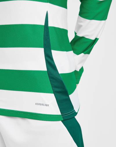 The Glasgow-based champions of Scotland’s 2024-25-season primary release features the Celts’ iconic green and white hoops, interrupted only due to the raglan sleeves and the darker green used for side-of-trunk flashes.