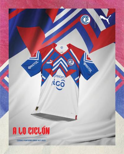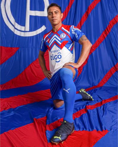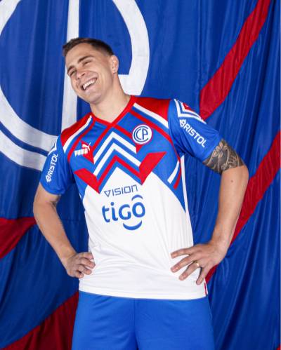 The Paraguayan Primera División side’s 2023 change release features a complex decoration in blue, white and red - resulting in blue sleeves - while white takes up the lower portion of the article.