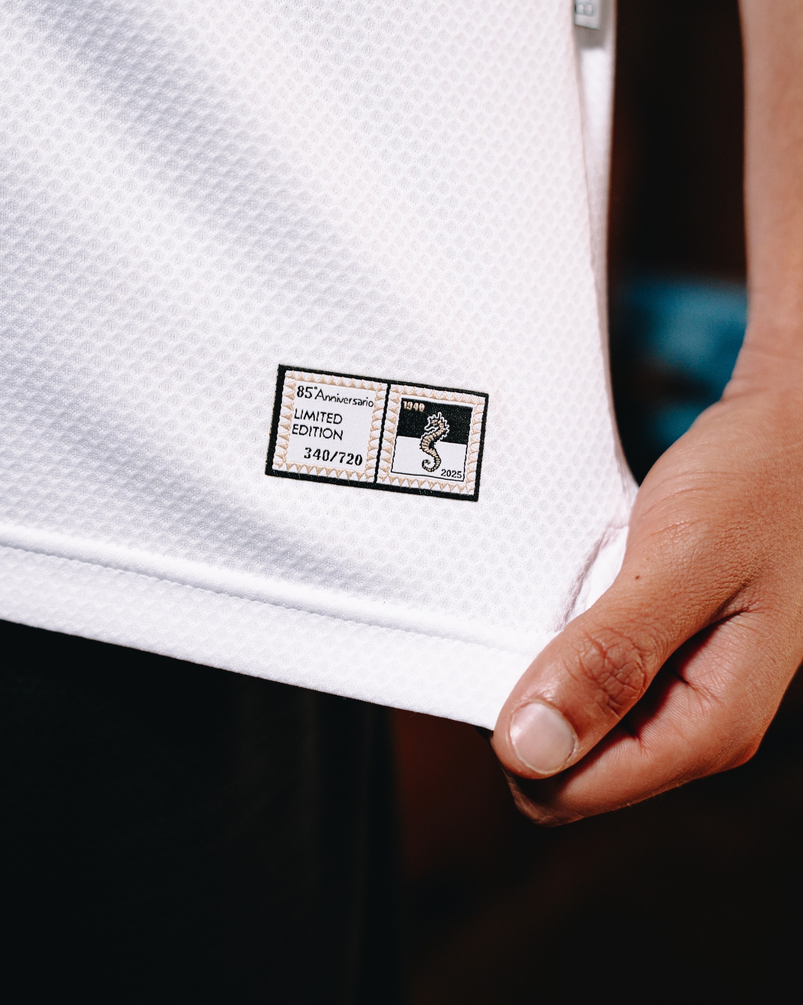 A bespoke badge replaces the usual club crest for this occasion, retaining the black-and-white seahorse design but enhanced with gold embroidery and the number 85. Each kit comes in a dedicated box featuring gold accents and matching anniversary graphics.