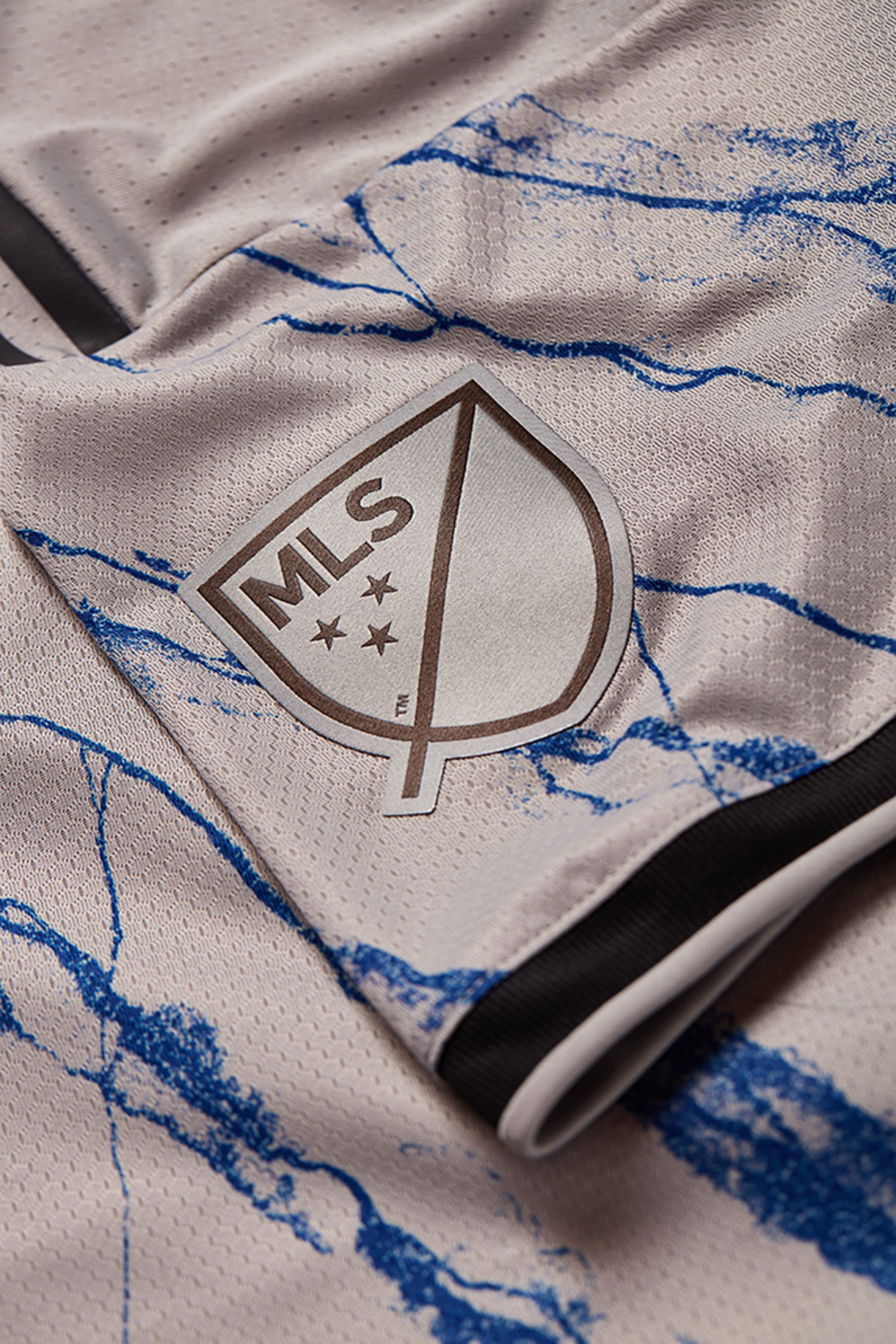 The new jersey features the return of the blue colour, a testament to the Club's history, accomplishments, and identity. The streaks that run through the silver jersey evoke the blue that courses through the veins of all the Club's supporters from the very beginning.