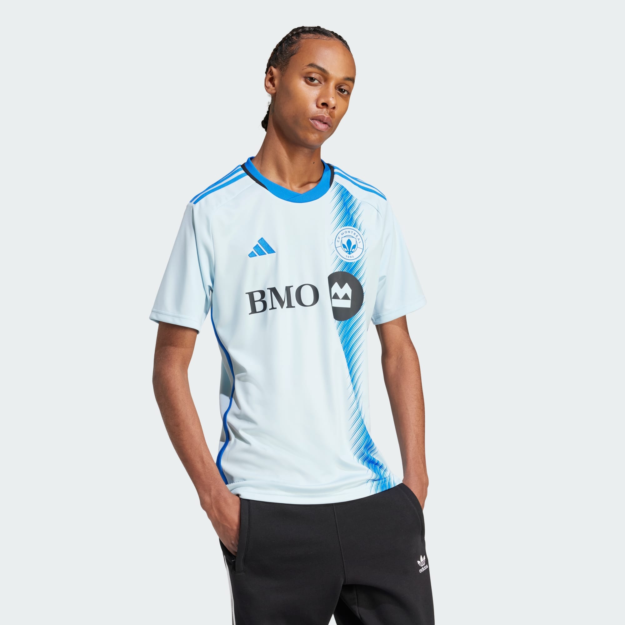 The jersey's back is adorned with elements that celebrate both the club's legacy and its current ethos. The phrase "Droit Devant" (Straight Ahead) echoes CF Montréal's motto of unity and forward motion. Additionally, it features the acronym "I.M.P.A.C.T."—representing Inclusivity, Memory, Passion, Ambition, Collectivity, and Talent—tying back to the club's original name and its core values.