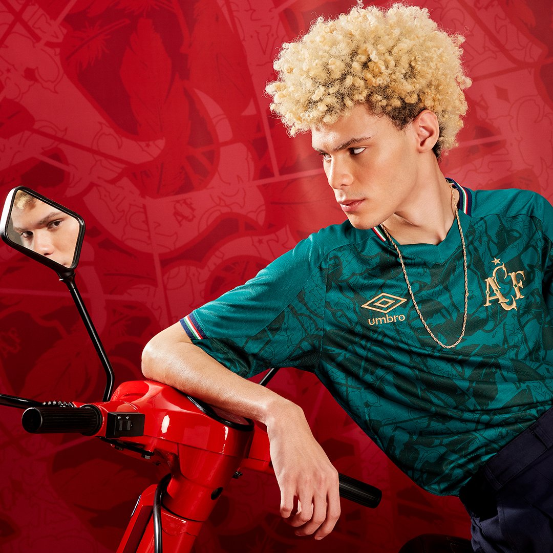 With a pattern mixing the “ACF” initialism with local foliage, the base is overlaid with golden detailing, including the crest, Umbro’s logos and other partner branding.