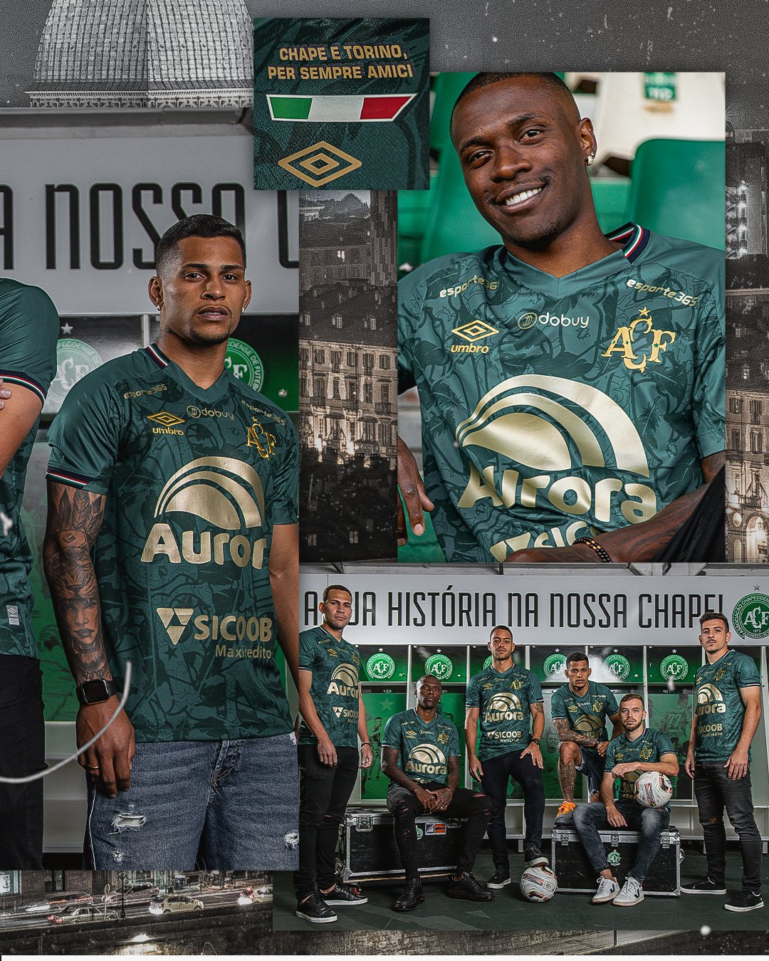 As part of Umbro’s new “Nations 2022” campaign, Brazilian side Associação Chapecoense de Futebol have a new green third shirt which celebrates ties with Italy.