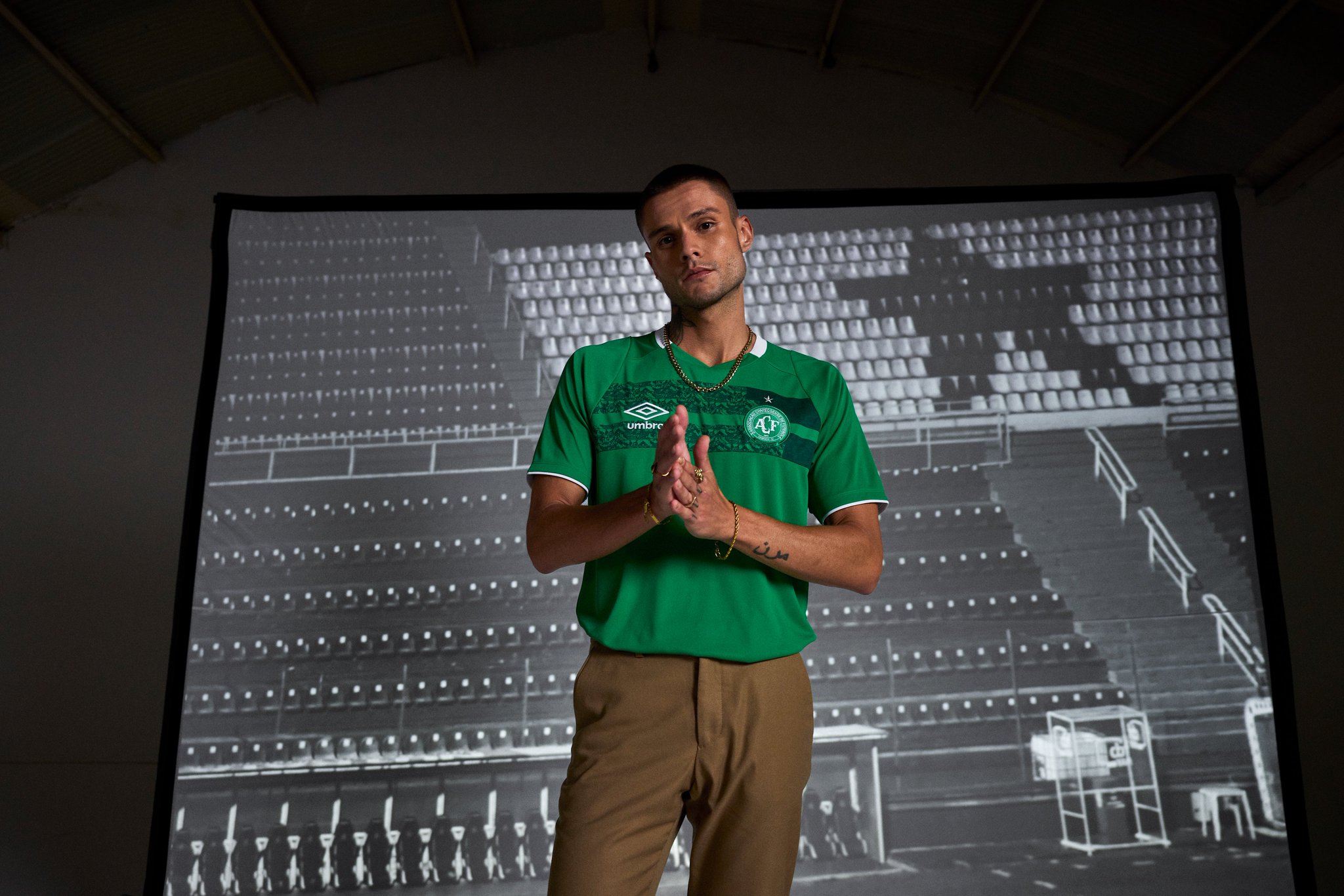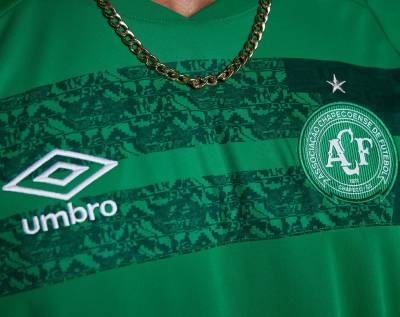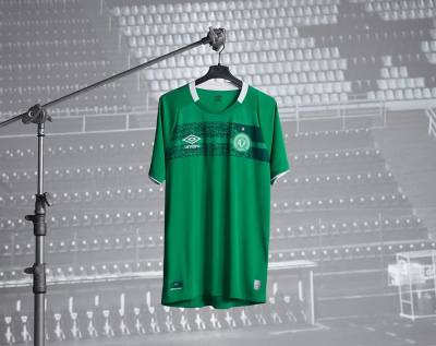 Paying tribute to the Brazilian side’s Arena Condá home ground through images in chest striping that also incorporate a map of the home city of Chapecó, a feather of the Indígena Condá mascot and the club initialism ACF, the new green primary shirt includes white in trim and in the British brand’s chest logo.