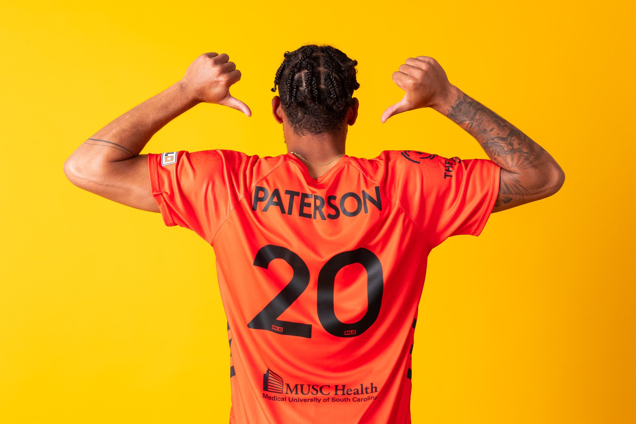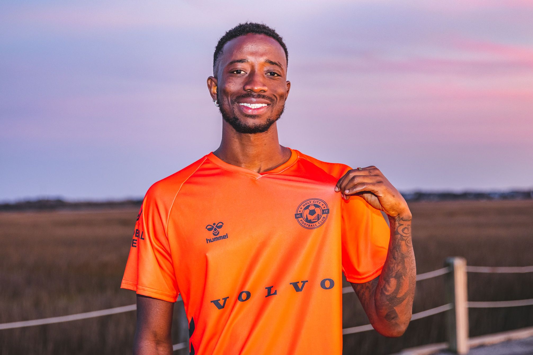 Inspired by the sunsets over Patriots Point during matches, the kit features an orange colour. The iron gate pattern is subtly placed on the shoulders to complement the Home and Away kits.