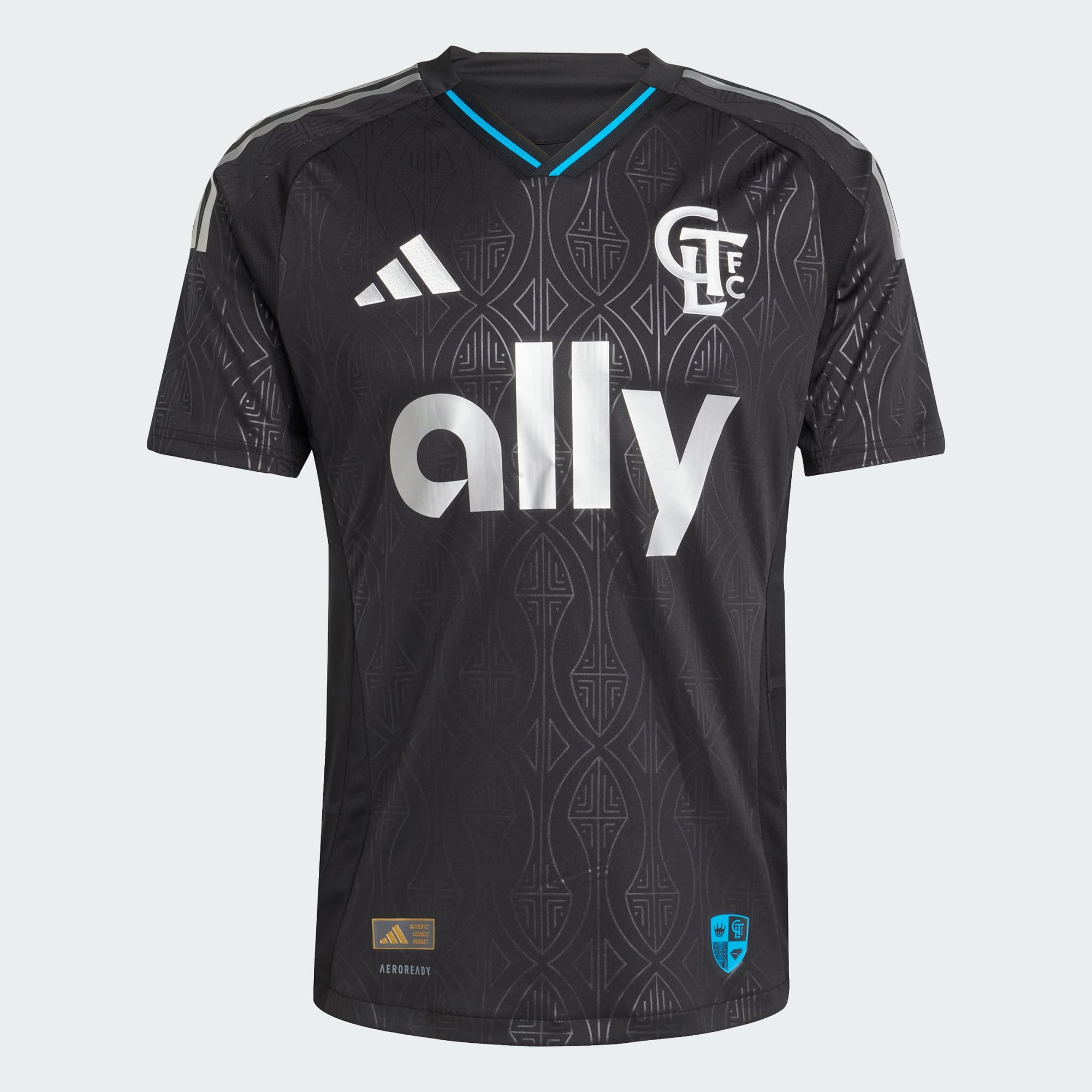 Charlotte FC have revealed their 2025-26 secondary kit, the Fortress Kit by adidas, featuring a black base with tonal patterns and silver accents.