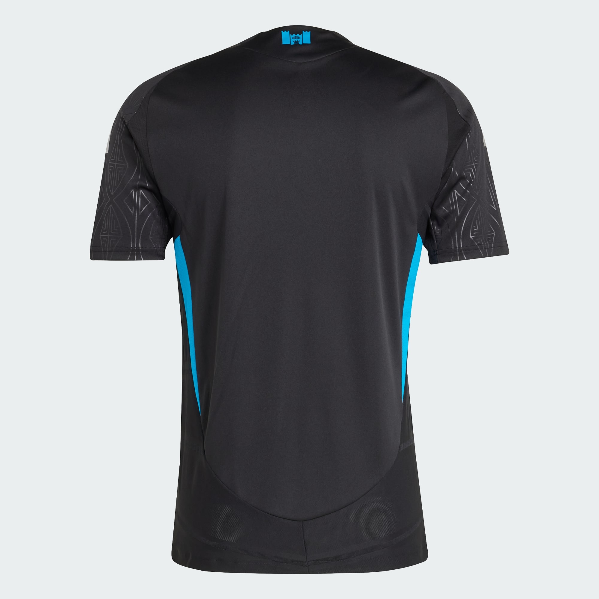 A fortress emblem is placed on the collar, representing Bank of America Stadium with a regal touch, honouring the club’s home and its loyal supporters. Completing the look, the kit includes matching black shorts and socks with blue accents.