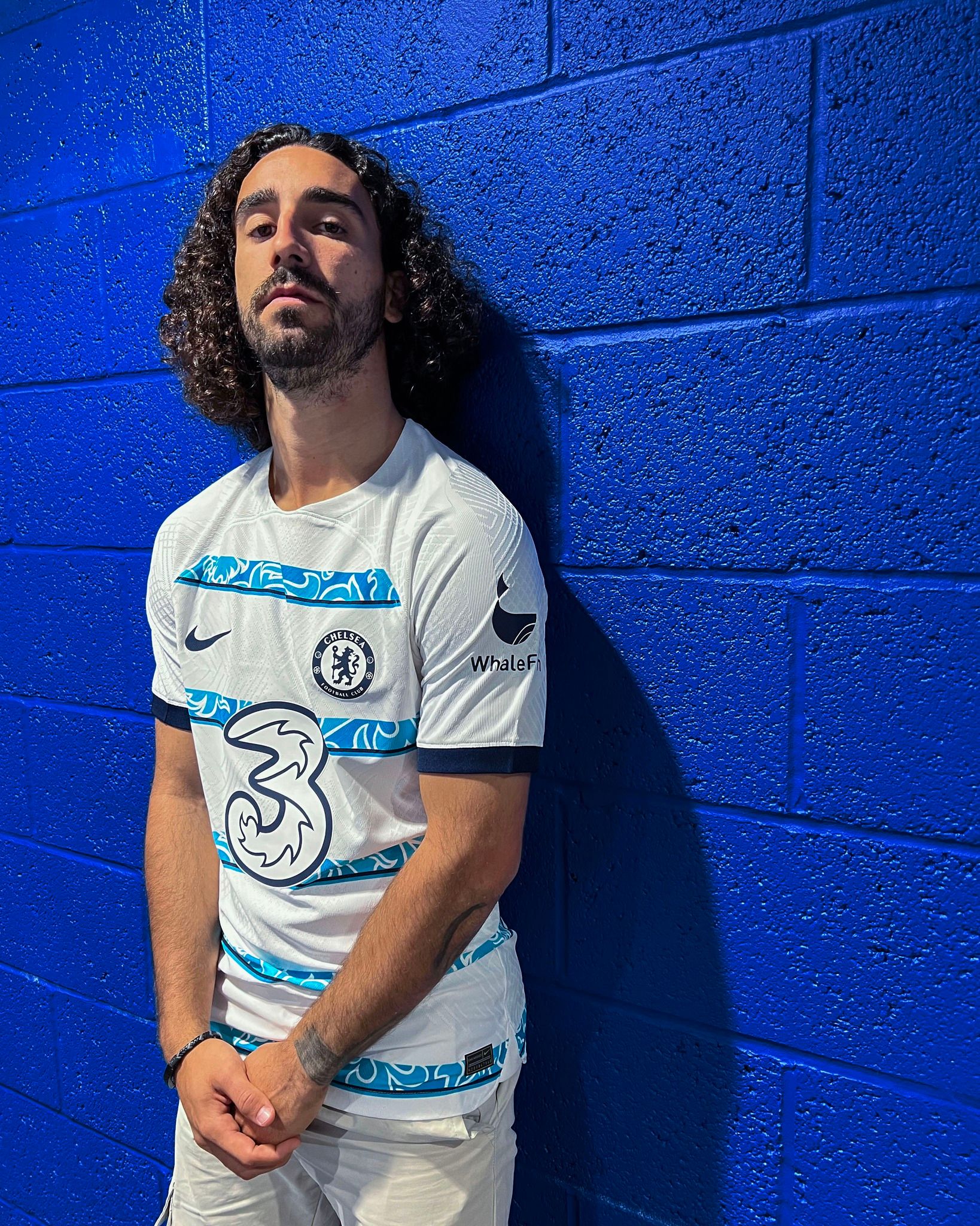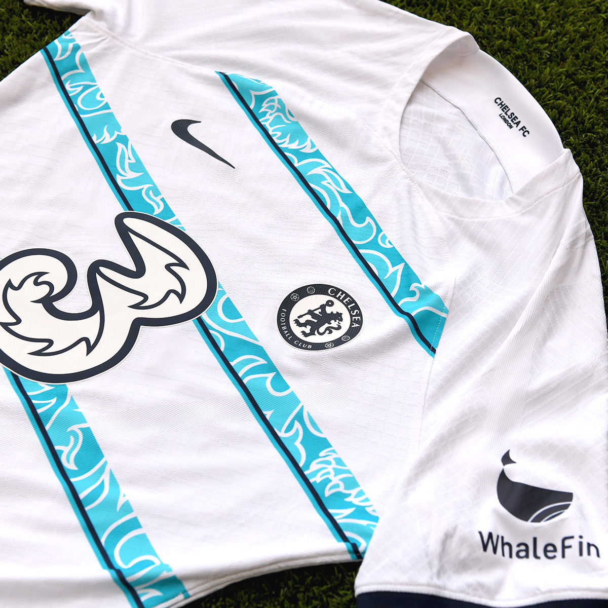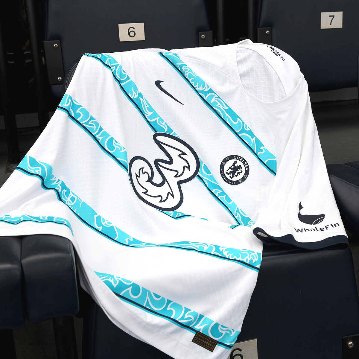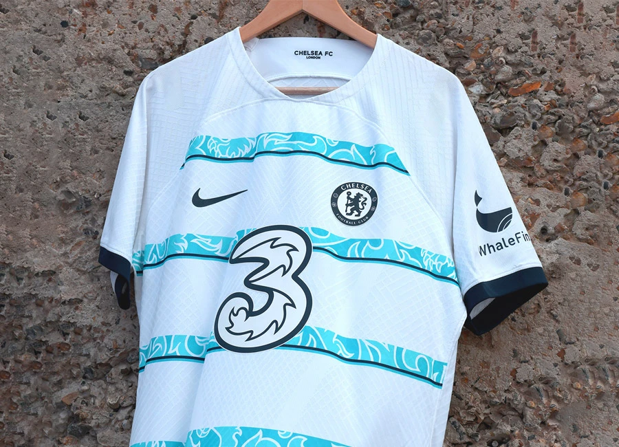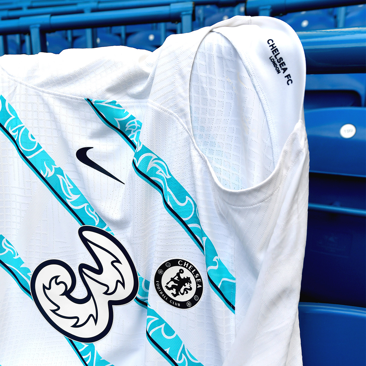 The unique lion pattern that appears on the collar of the home kit now features as turquoise stripes across the away kit. The inner neck design includes ‘Chelsea FC, London’ - a tribute to the city.
