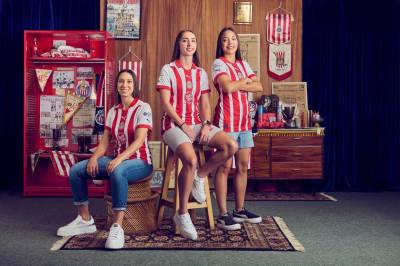 The new Puma design sees the famous red stripes on the white base stylised to represent the horns of the nickname (meaning “goats”) while the collar and cuffs are in navy blue, the German supplier’s logo contrasts in white and the crest is in full colour.