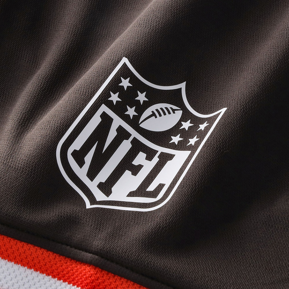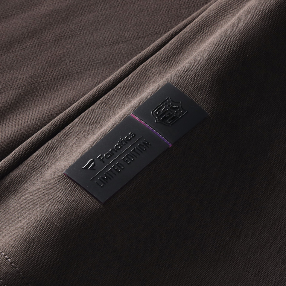 On the reverse, “Cleveland Browns” lettering is positioned just below the collar. The design also carries a woven Fanatics Limited Edition authenticity tab near the hem, emphasising its exclusivity.