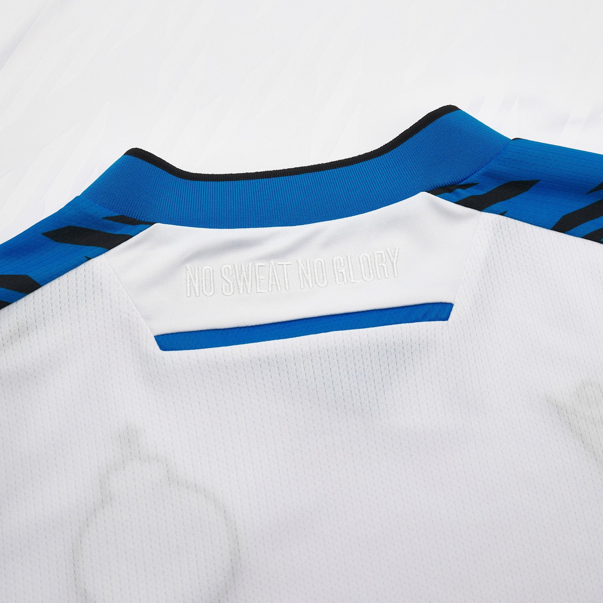 The Belgian Jupiler Pro League side’s 2023-24 primary-change release is in white with blue raglan sleeves and a blue neck, both embellished with black.