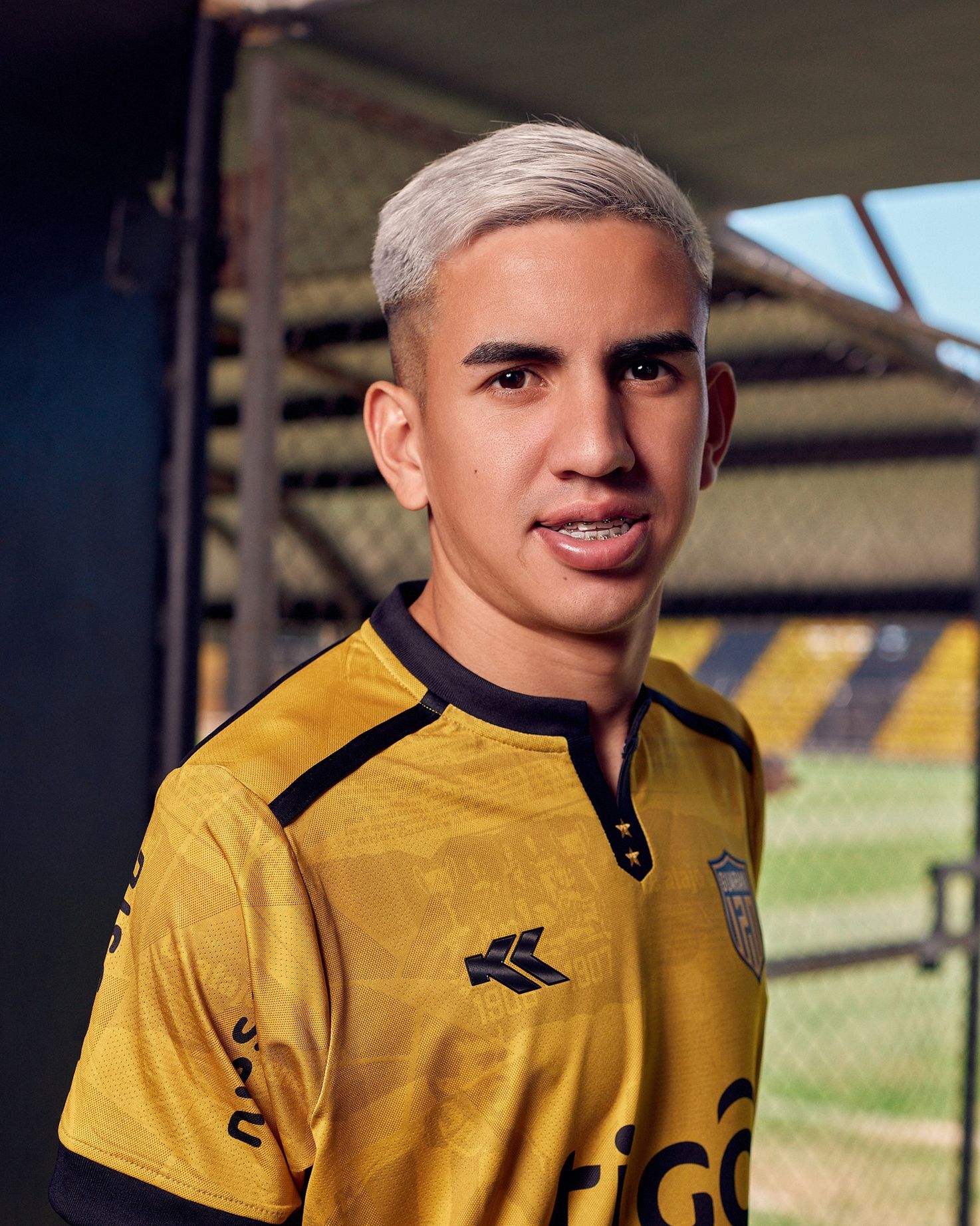 Trim is in black, matching the shorts, and the socks that complete the kit are in golden yellow to tie in.