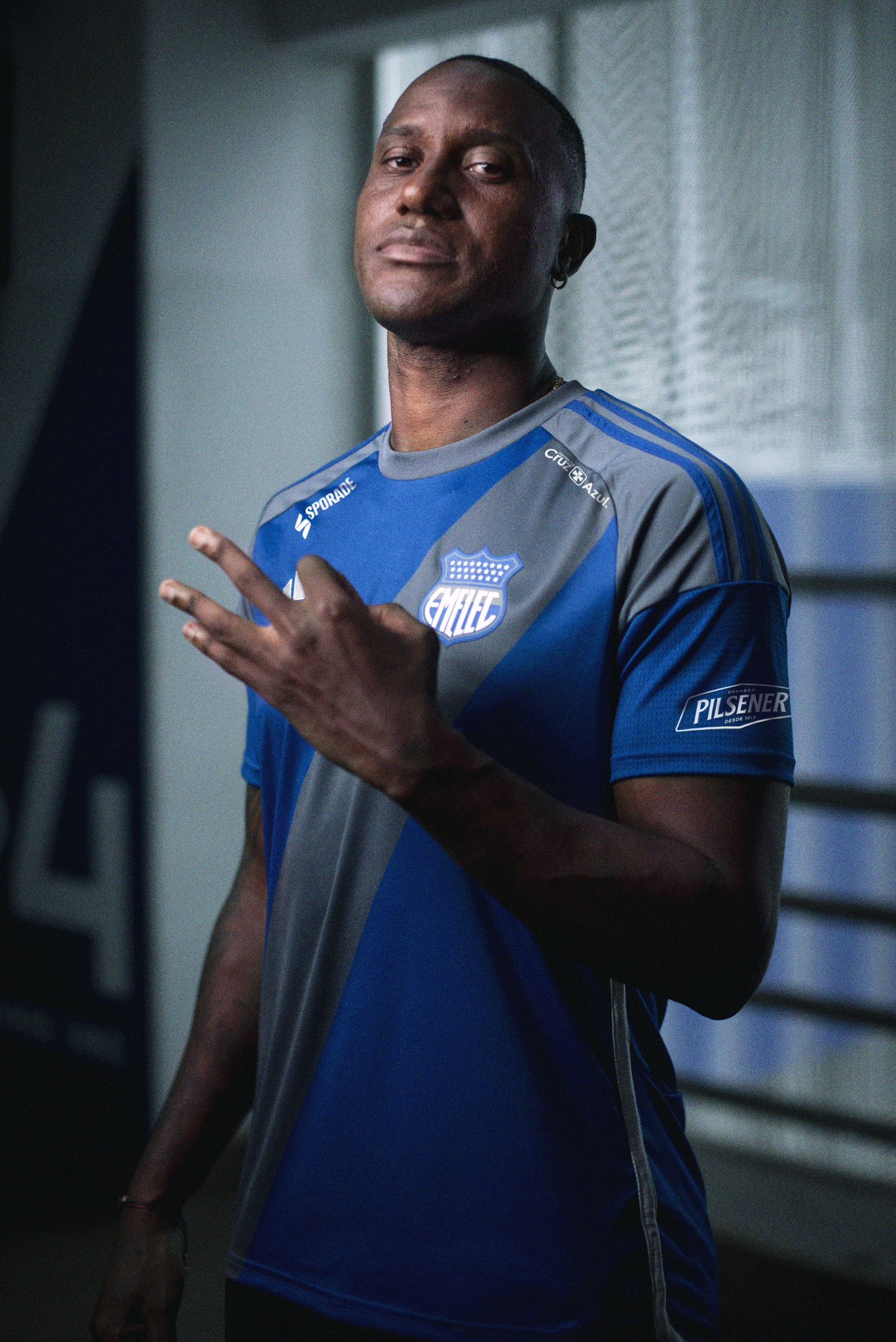 Partner/sponsor branding appears in white, including the German supplier’s “3-Bar” logo - though the shoulder striping is in blue - and the Guayaquil-based side’s latest primary kit will be completed with grey shorts and socks.