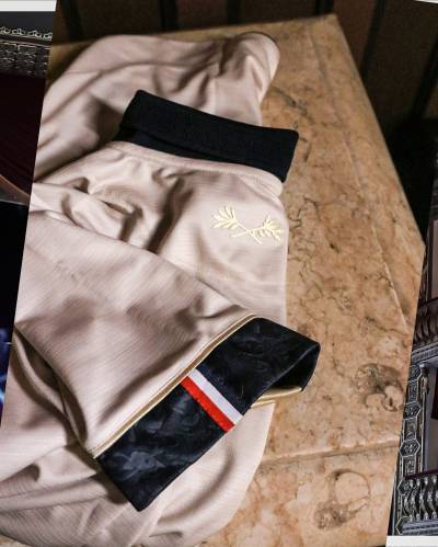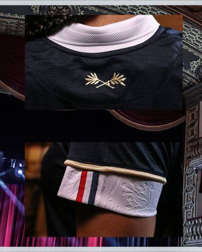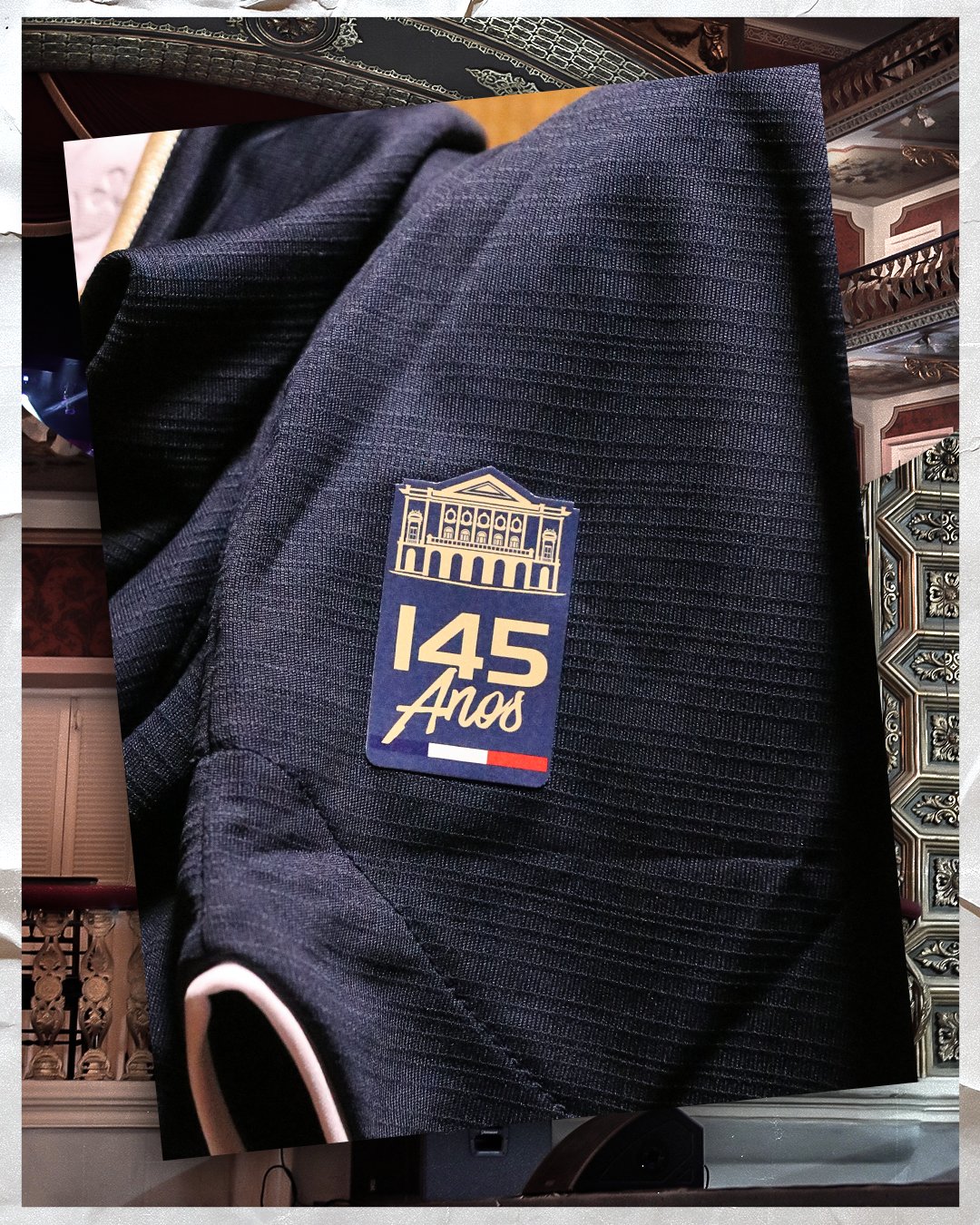 Carrying the branding of Volt but designed in-house and celebrating the famous Theatro da Paz in Remo’s home city of Belém, the navy shirt has a white collar and white cuffs with elaborate decoration and featuring tri-colour tags.