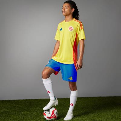 The multicoloured crest also sees the red of the national colours replaced with orange while blue is also present in the German supplier’s “3-Bar” logo and the first-choice kit will be completed with complementing shorts and socks.
