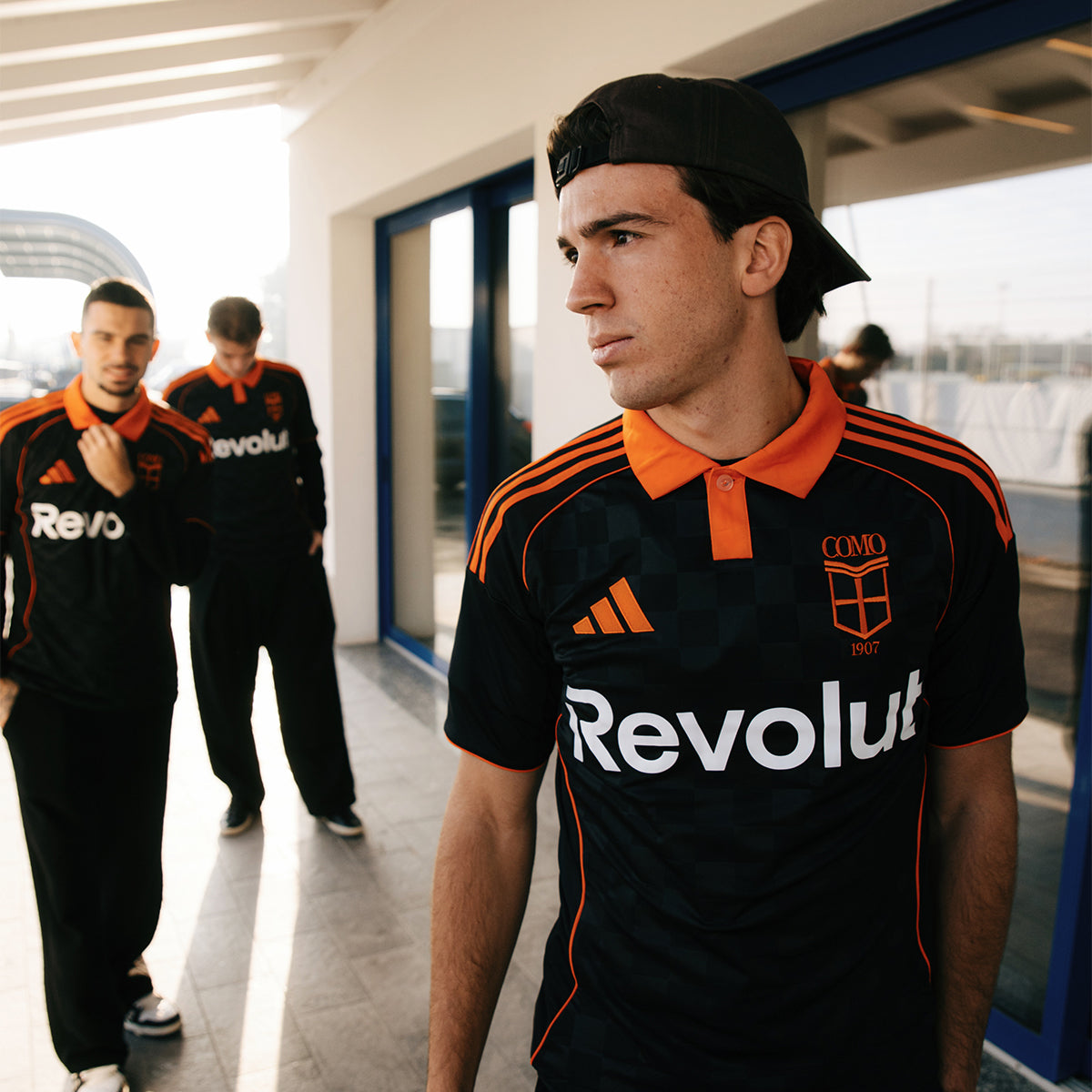 Como 1907 have released their adidas Third Kit for the 25 26 season, created under the ongoing creative direction of Rhuigi Villaseñor. The new Como football shirt continues the club’s developing visual identity and introduces a black base combined with bright orange detailing.