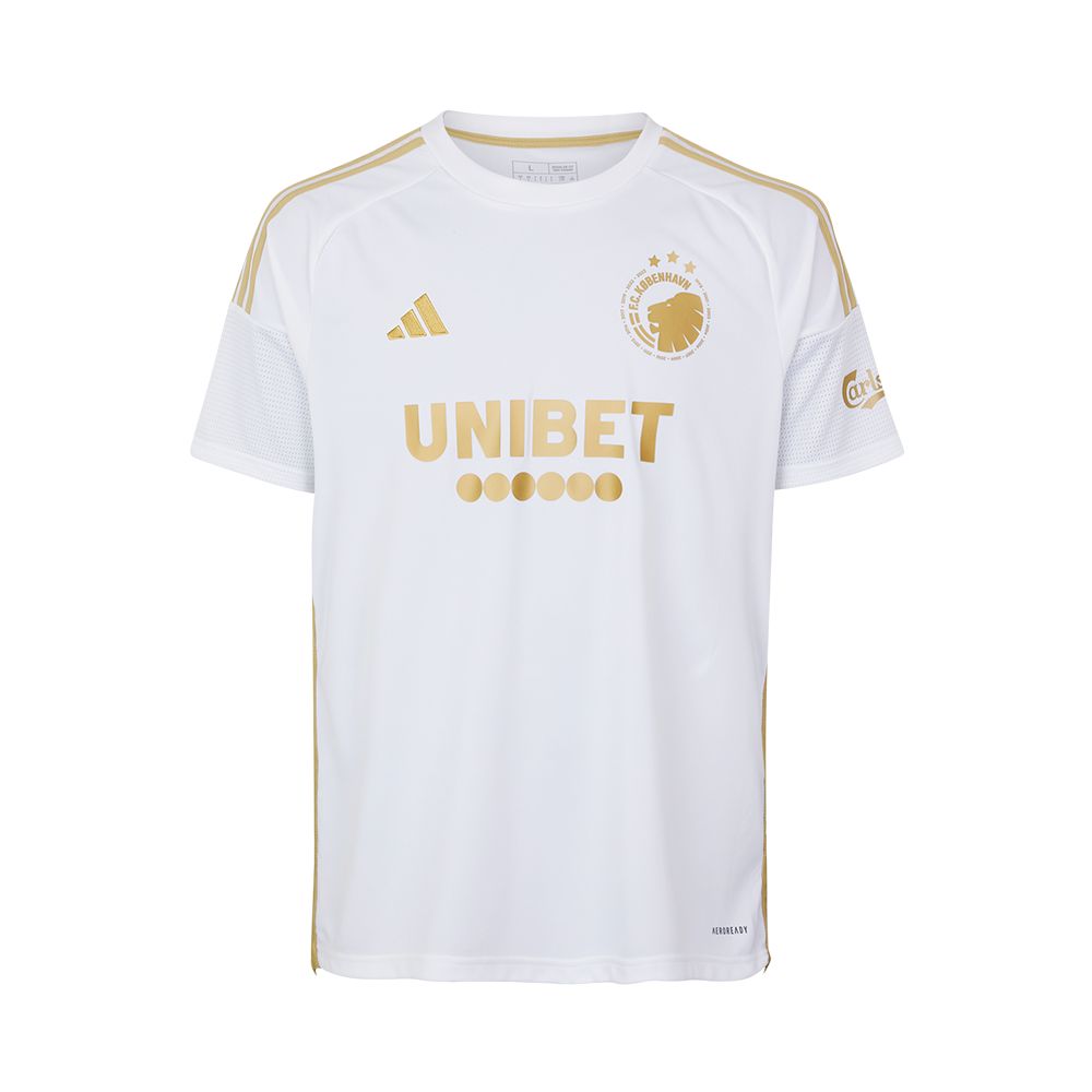 The otherwise white special-edition adidas design features all the usual suspects - the crest (encircled by title-winning years), city coat of arms on the upper back, the Unibet and Carlsberg logos and the German supplier’s branding - but doesn’t deviate from the dual-coloured palette. The kit was completed with matching white shorts and socks.