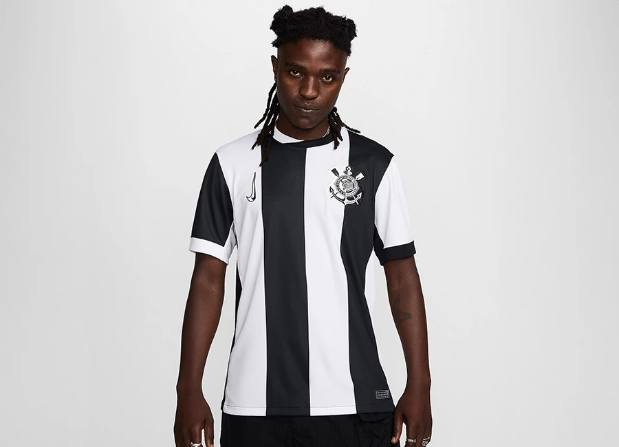 Part of the US supplier’s “Together We Rise” campaign, celebrating the growth of women’s football, the 2024-25 secondary-change release for the Campeonato Brasileiro Série A Brazilian giants boasts black and white stripes with this binary approach being applied to all the embellishment, including the rotated-90-degrees-and-dualised “Swoosh” logo - nodding to the Greek goddess from whom Nike take their name - and the crest.