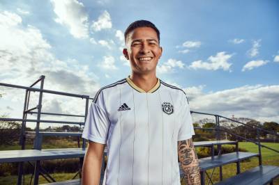 Produced by adidas, the new first-choice shirt is in red with blue accents and the crest in full colour, while the change is in white with black and gold and features the team emblem converted to monochrome.