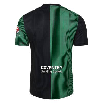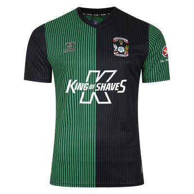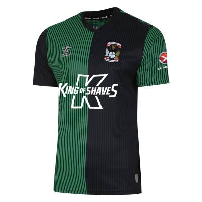 This design was previously adopted by the Sky Blues in the late 1980s during their initial partnership with Hummel and again during the League One promotion season of 2019/20. However, this new version brings a fresh twist, featuring a green and black colour scheme reminiscent of the celebrated kit.