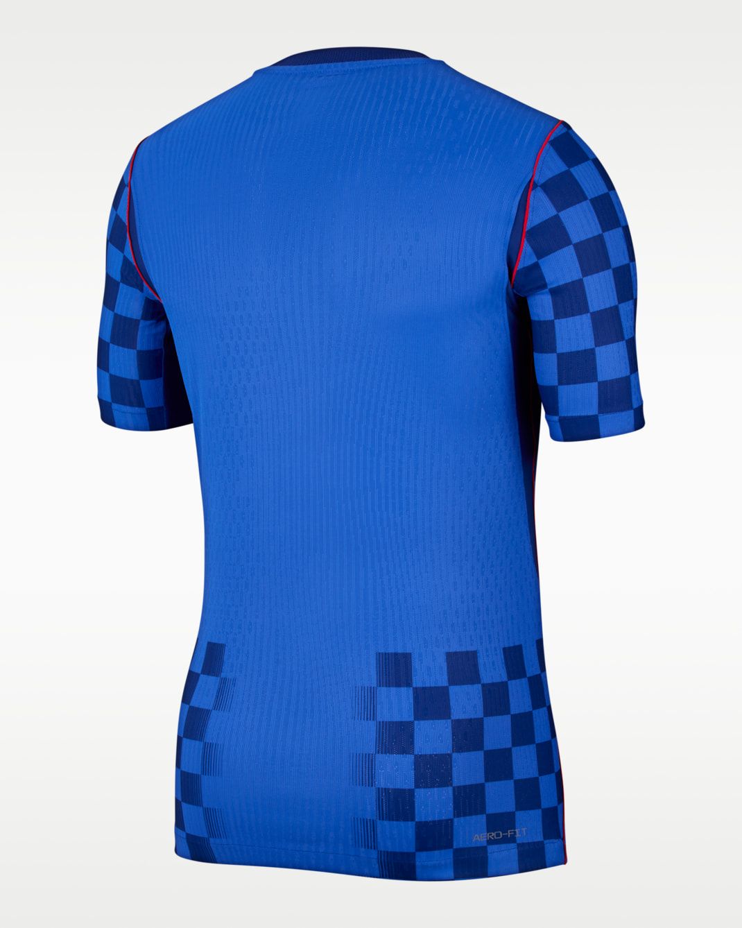 The new Croatia jersey is presented in a Deep Royal Blue and Hyper Royal colour palette with white detailing. The design features a refined checkerboard graphic across the front and sleeves, referencing the pattern associated with Croatian football identity and inspired by the smaller-scale checks seen in the 1990 Croatia v United States football match. Subtle linear textures are integrated within selected squares, creating variation across the surface.