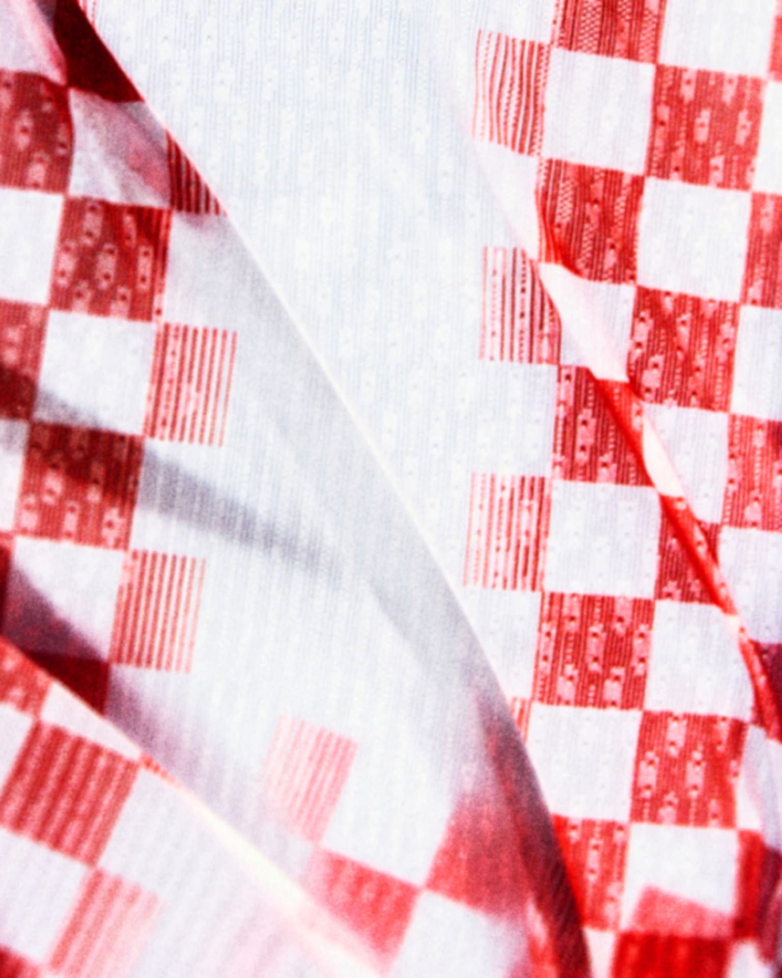The new Croatia jersey is presented in a White, University Red and Hyper Royal colour combination. It retains the national side’s recognisable red and white checkerboard identity, applied across the sleeves and side panels, with a central white body panel creating contrast through the front.
