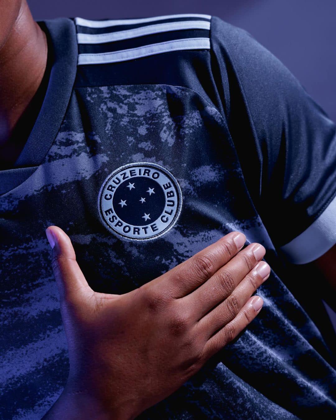 The new adidas secondary-change design is being marketed as referencing the mountains around Cruzeiro’s Belo Horizonte (Minas Gerais) home, with the entire release in tones of blue - including even the stars of the famous crest, rendered here in circular form.