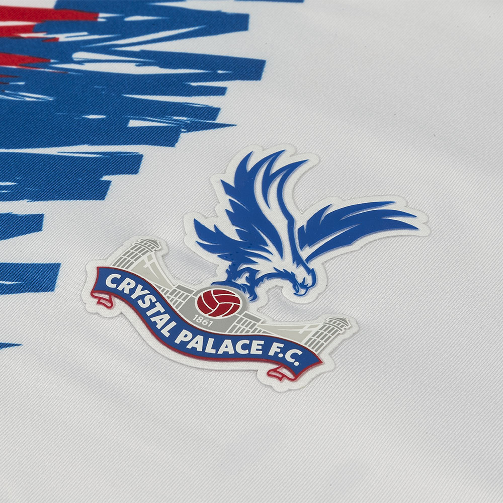 Another interesting detail is the text 'EAGLES' printed on the rear half-moon of the shirt as well as the rib-knit collar and sleeves incorporating a dual pinstripe in the club's red and blue. Finally, CPFC appears alongside the new crest on the customised inner backneck.