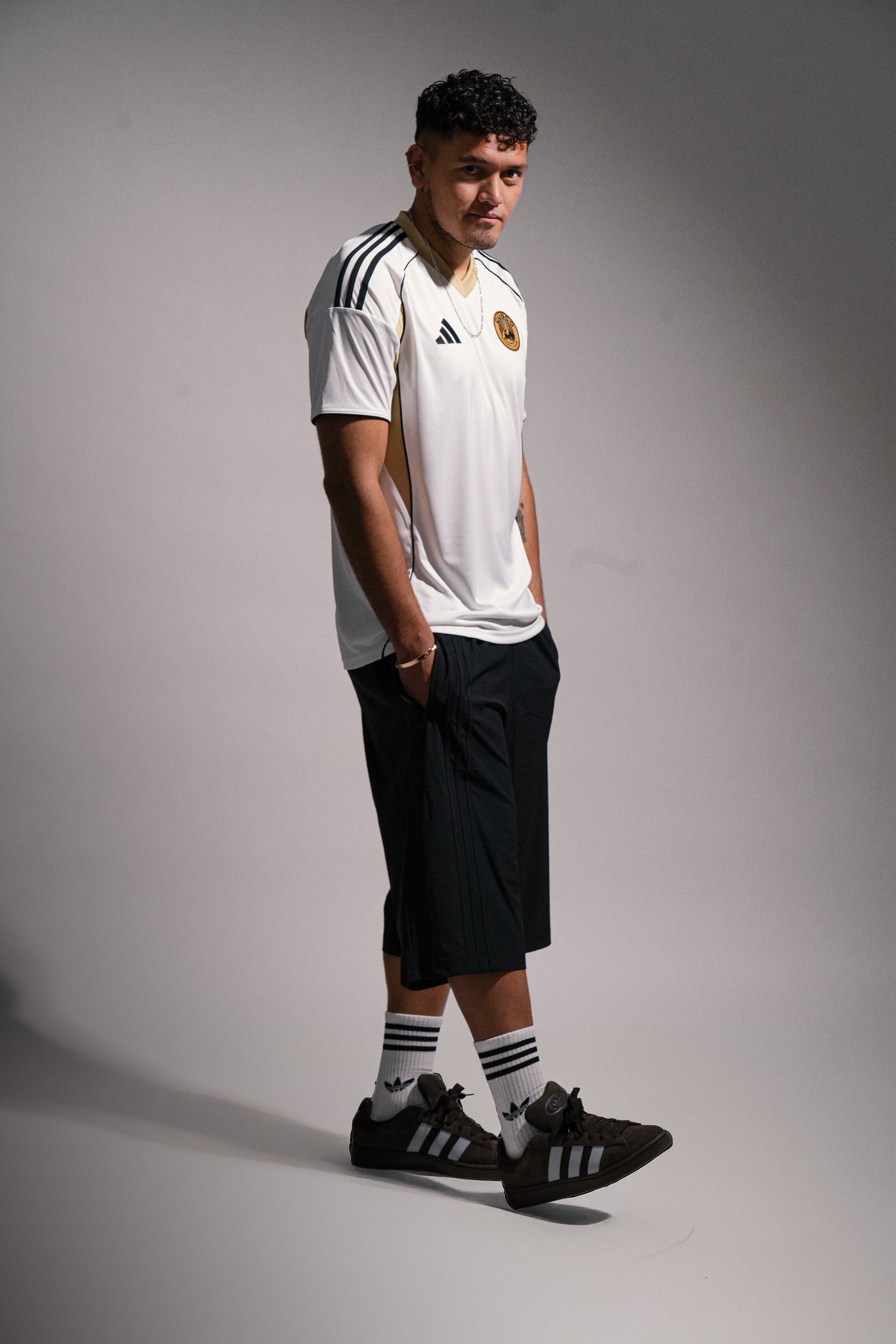 Completing the set, the Third shirt is presented in white, combined with black adidas shoulder stripes and gold detailing throughout. Side panels match the construction of the Home and Away versions, ensuring a unified template across all three shirts. Matching shorts and socks complete each full kit configuration.