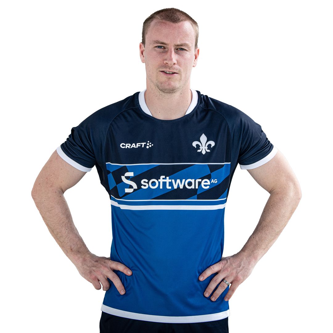 The back of the neck also features a contrast lily, above a stripe detail, and white trim completes a shirt which will be combined with navy shorts and white socks to form a matchday kit either in the German Bundesliga, should things go to plan this weekend, or in the 2. Bundesliga once again.