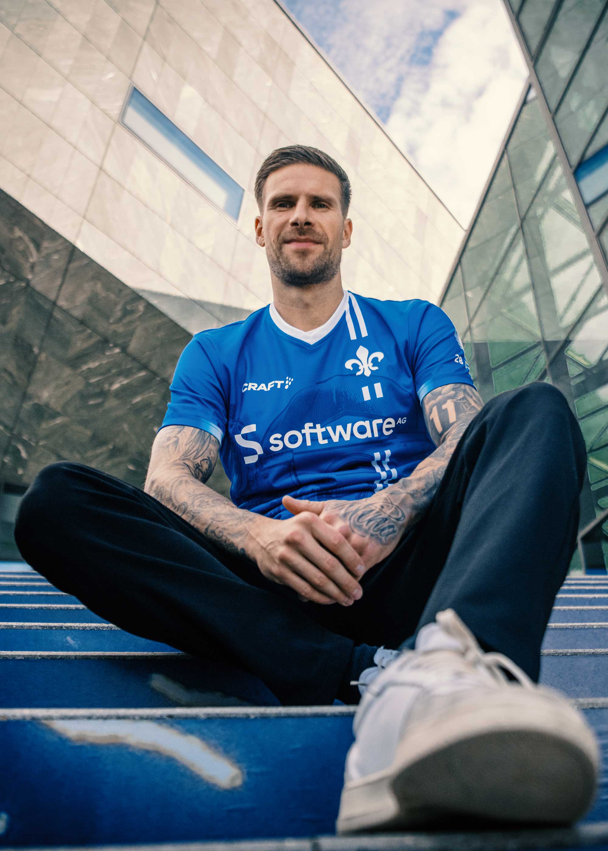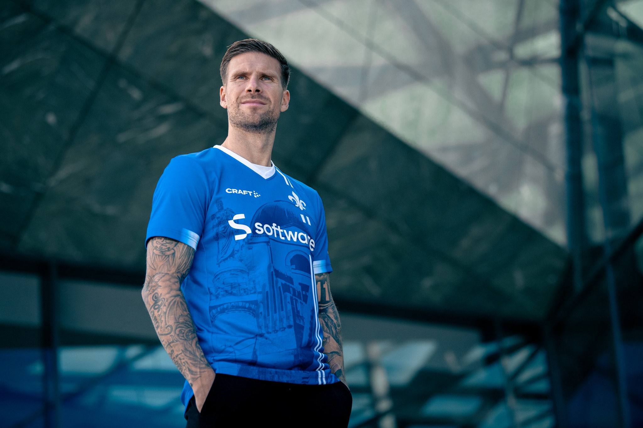 Designed with the influence of fan input, Craft’s finished article - to be worn against Regensburg when the domestic campaign recommences - is in blue with a sublimated print of local landmarks.