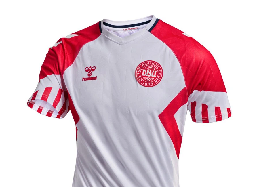 Echoing the change design worn at the 1992 European Championship - “Euro 92” - this is Denmark’s new Hummel Away shirt.