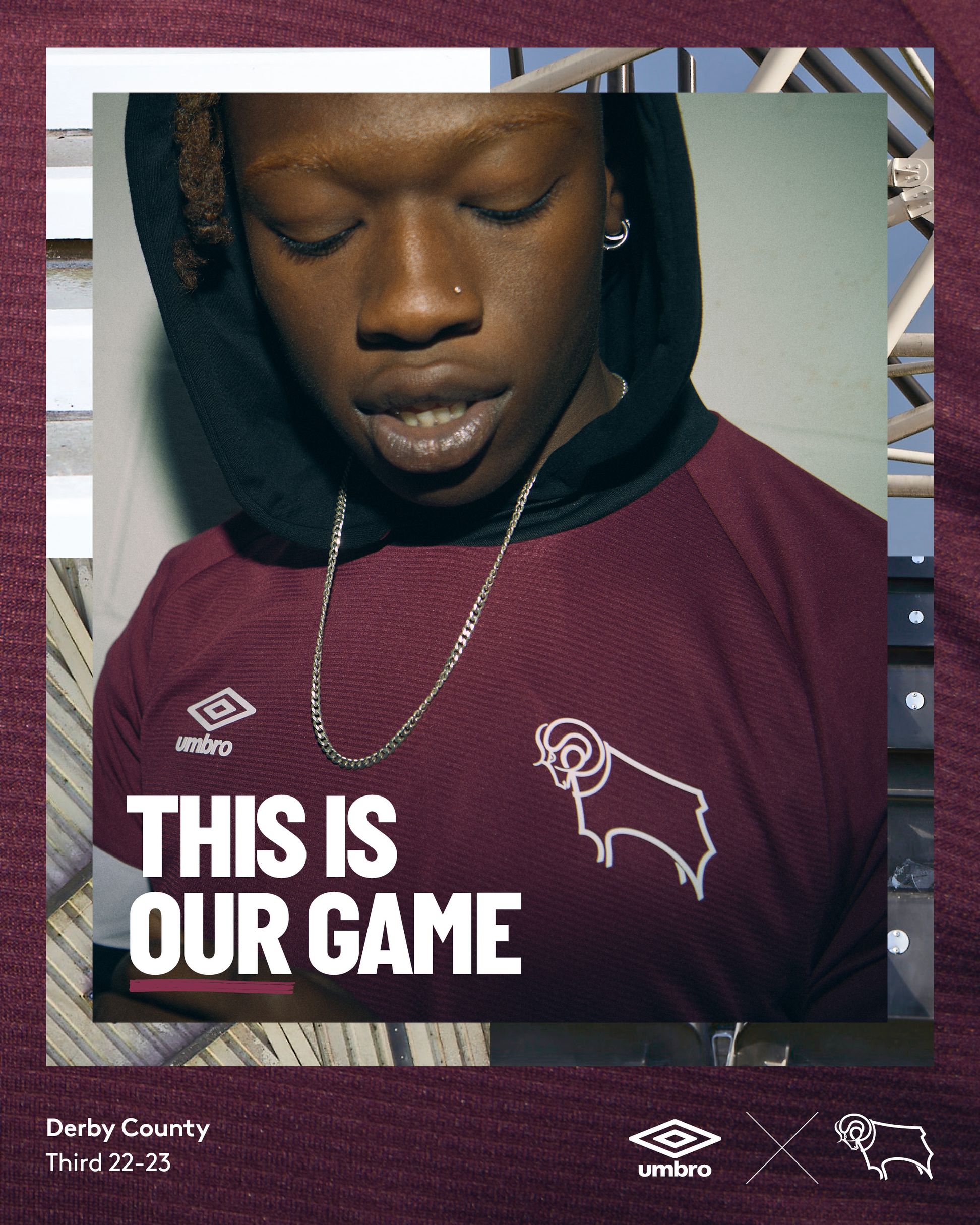 The all-maroon shirt, which is reminiscent of the popular change kit worn by Derby in the 1996/97 season under the late Jim Smith, is paired up with white shorts and maroon socks.