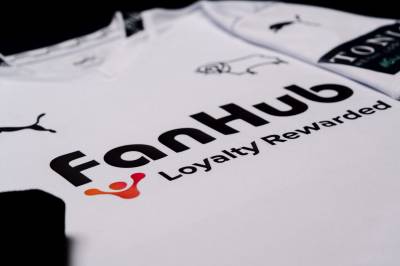 The back of the shirt features the wording ‘Derby County,’ while the front proudly displays the logo of FanHub, the club’s newly announced principal sponsor for the Men’s first team. The shirt is paired with black shorts and socks.