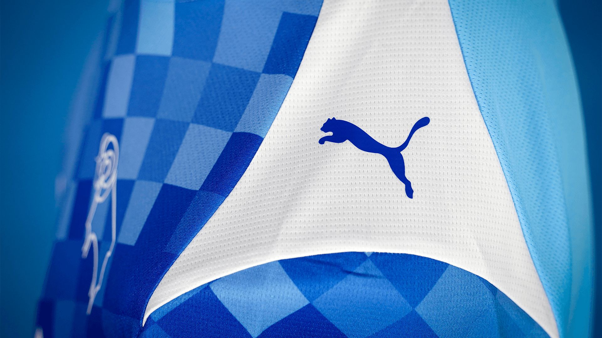 The design incorporates a chequerboard pattern in varying shades of blue, celebrating the ‘Timeless Blue’ element of the club’s identity palette.