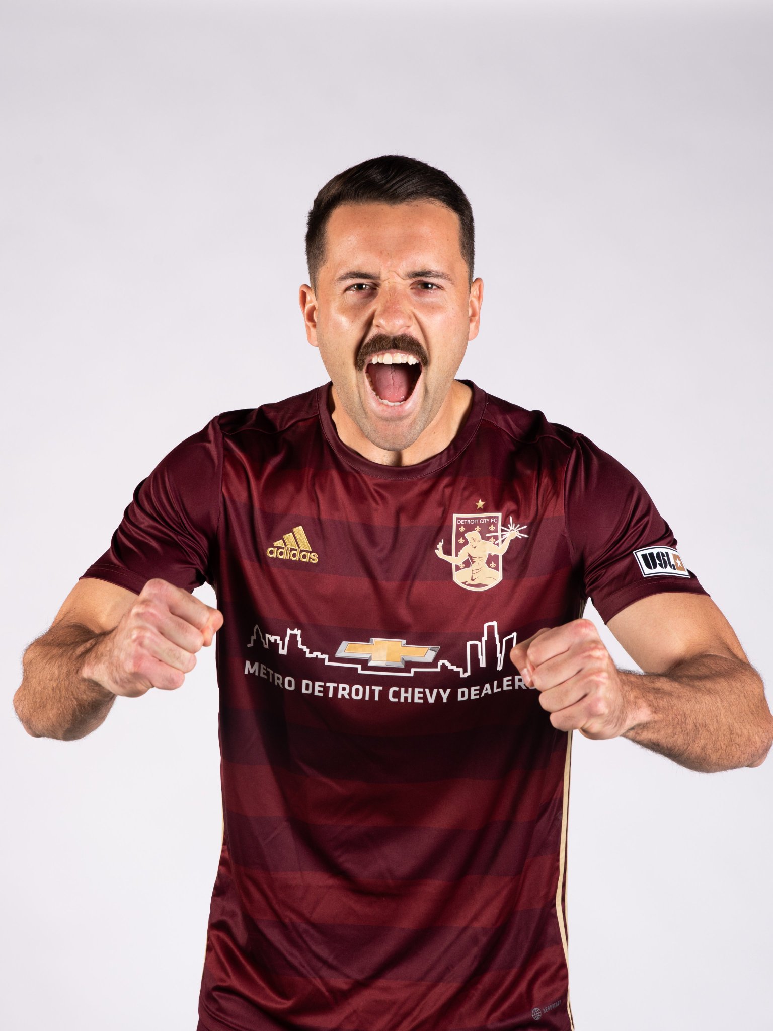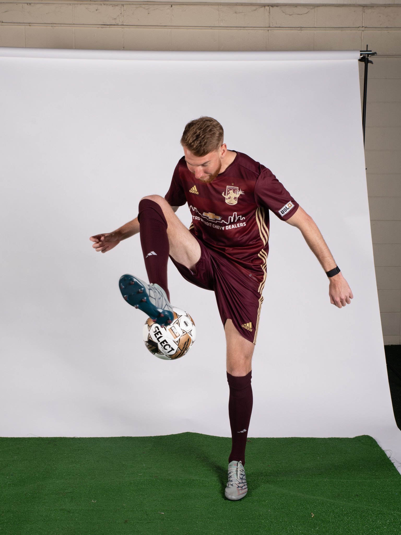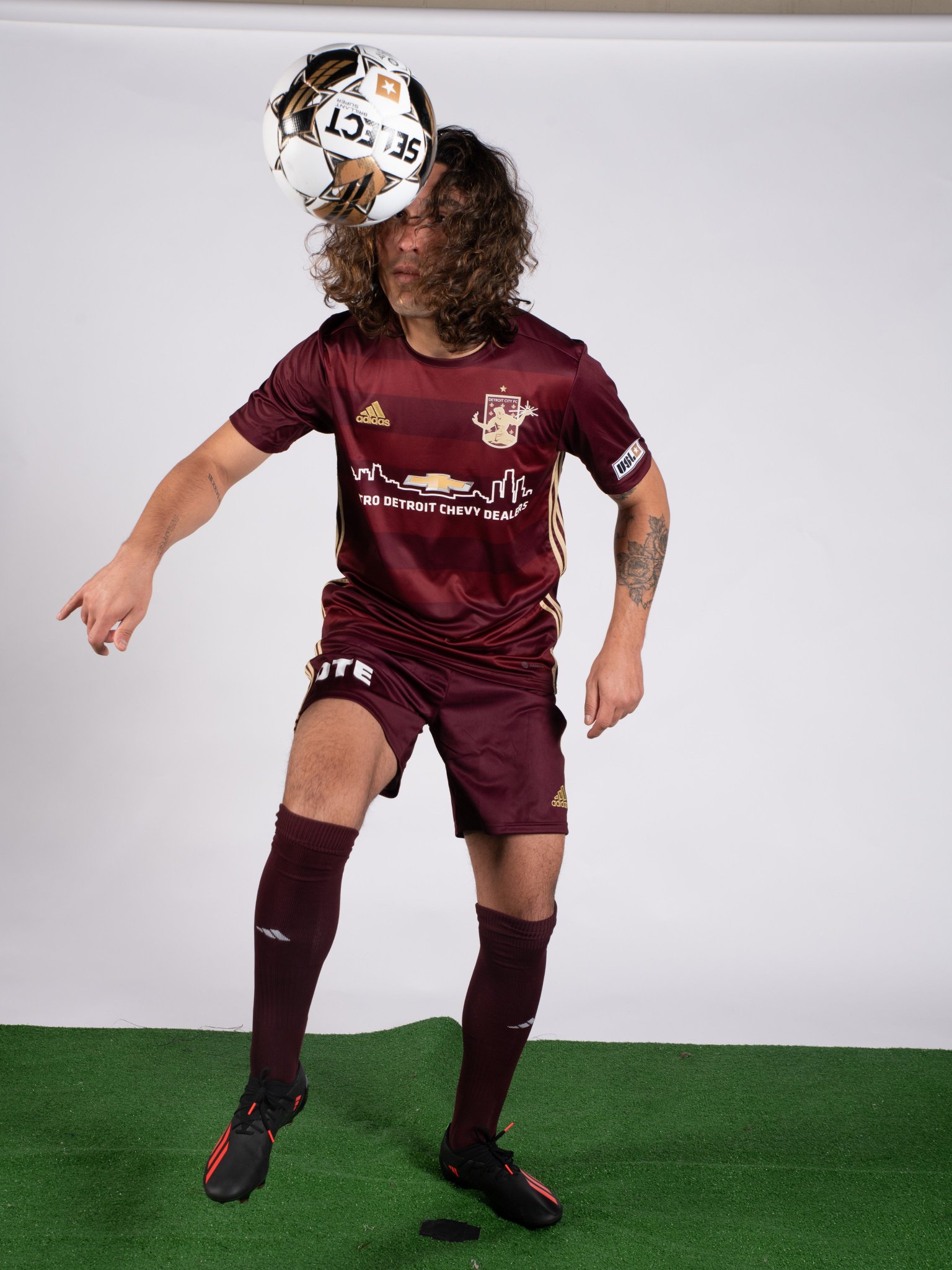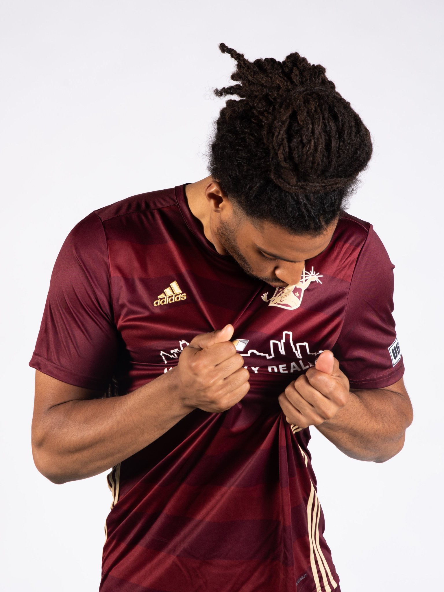 The American USL Championship side’s 2023 primary design features tonal maroon/red horizontal striping to the trunk - the club’s nickname is “Le Rouge” - with the German supplier’s branding in gold.