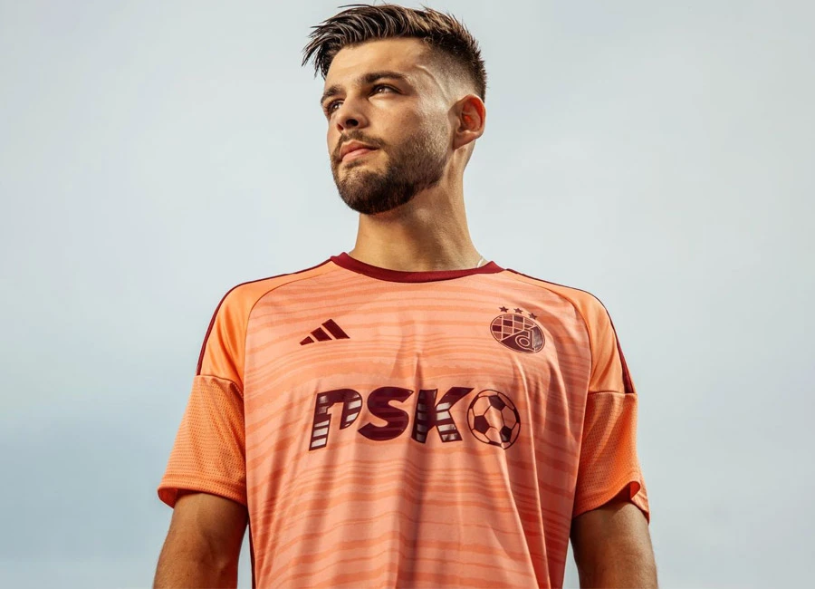 Croatian SuperSport HNL champions GNK Dinamo Zagreb have this orange-pink shirt as their current away.