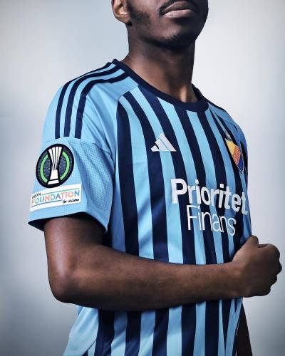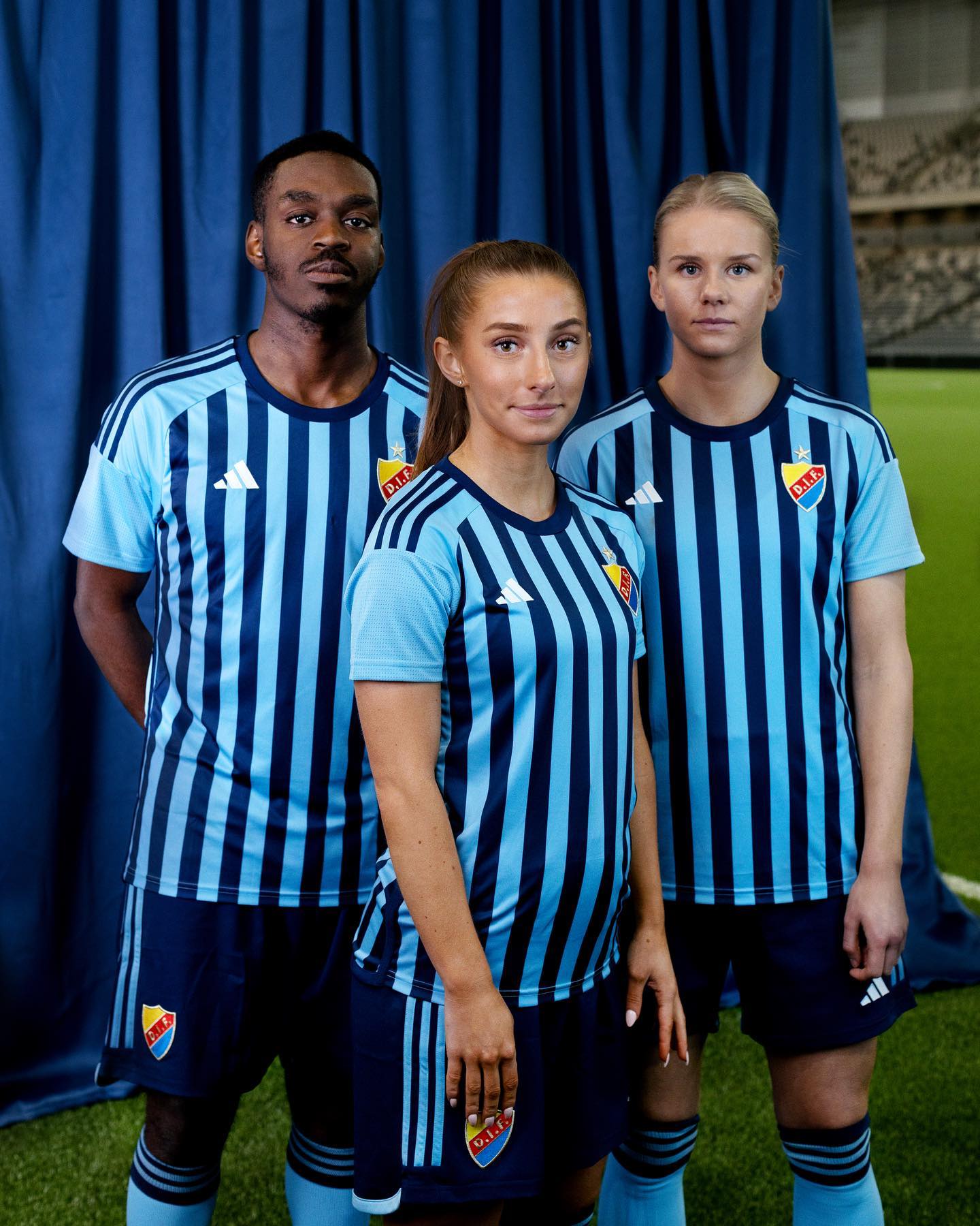 The new first-choice release returns Djurgården to their 1970s look, with thin dark- and light-blue stripes, applied to the structure of an up-to-date adidas template.