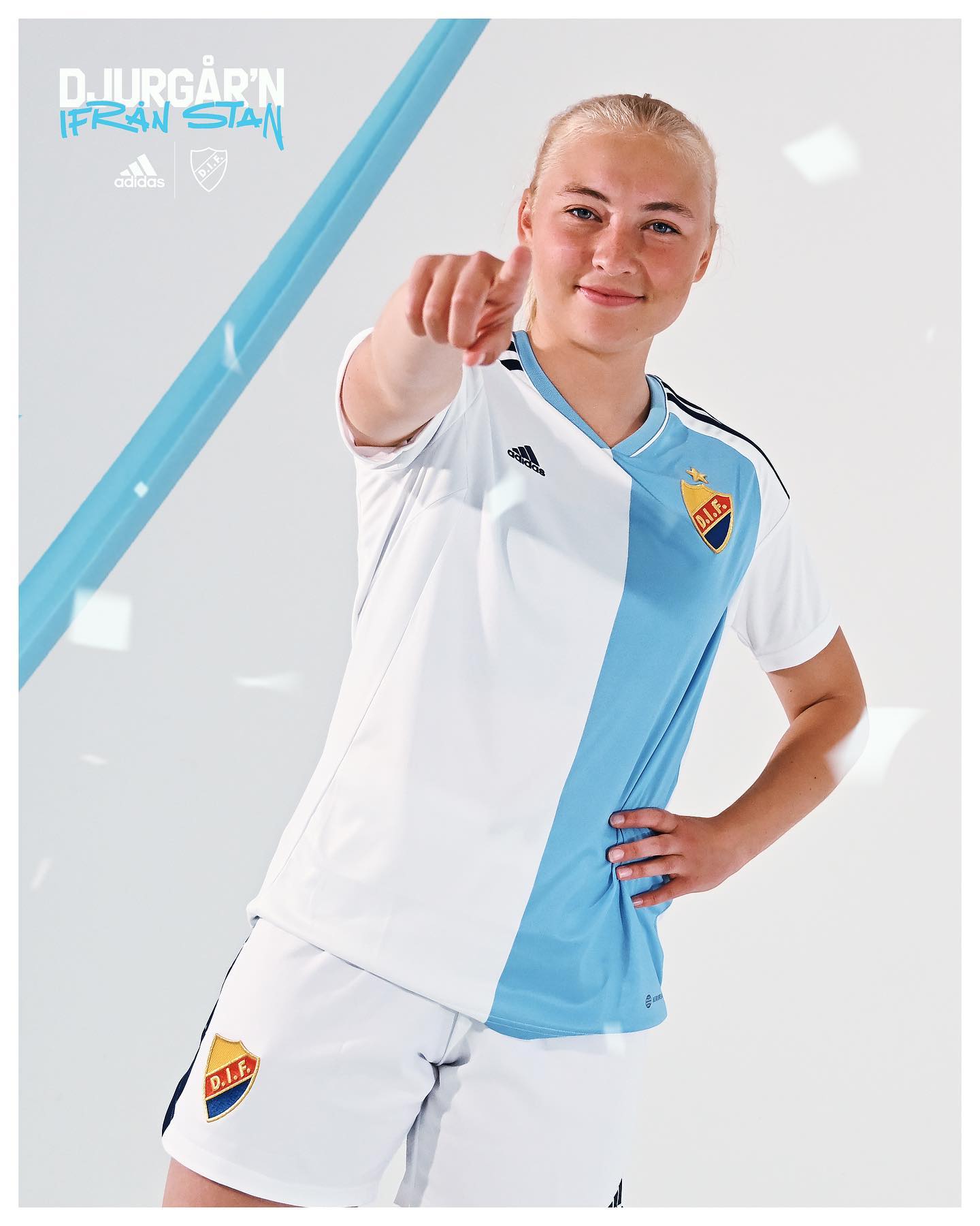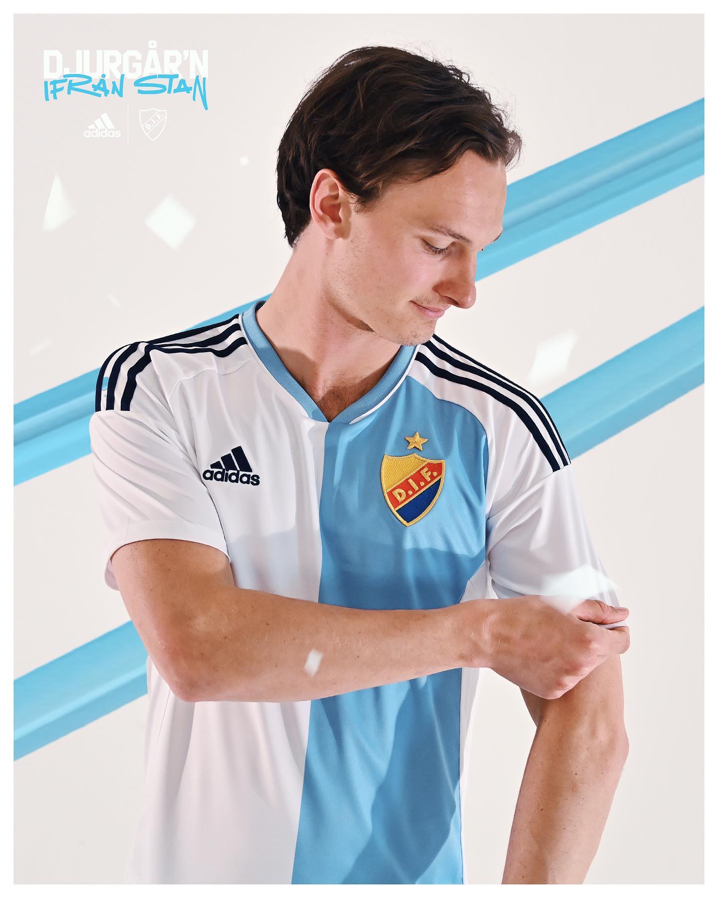 The 2022 secondary change design for the Stockholm-based Swedish side is in white with navy adidas branding and a sky blue half to the front of the trunk.