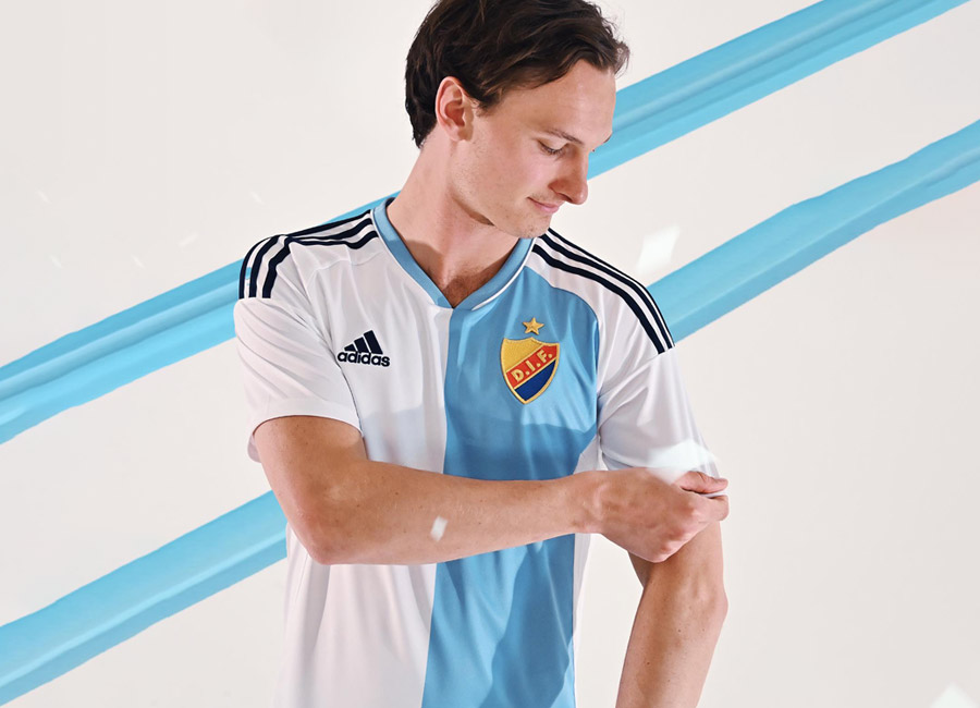 The 2022 secondary change design for the Stockholm-based Swedish side is in white with navy adidas branding and a sky blue half to the front of the trunk.