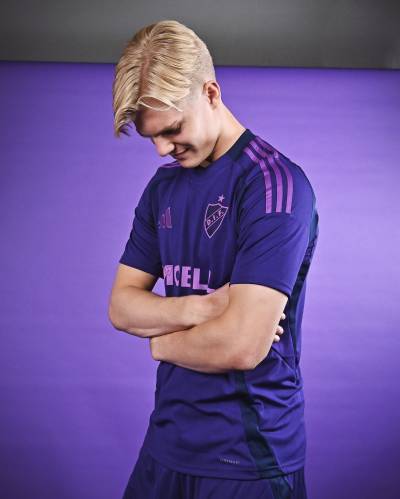 Representing a novel take on reboot culture, the 2024 secondary-change design for the Stockholm-based Swedish Allsvenskan side sees the red and navy/deep-blue colours of the 2004 Away release - worn in the 2005 title-winning campaign - blended for the fill of this tonal purple creation.