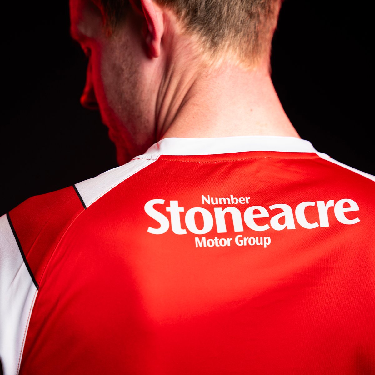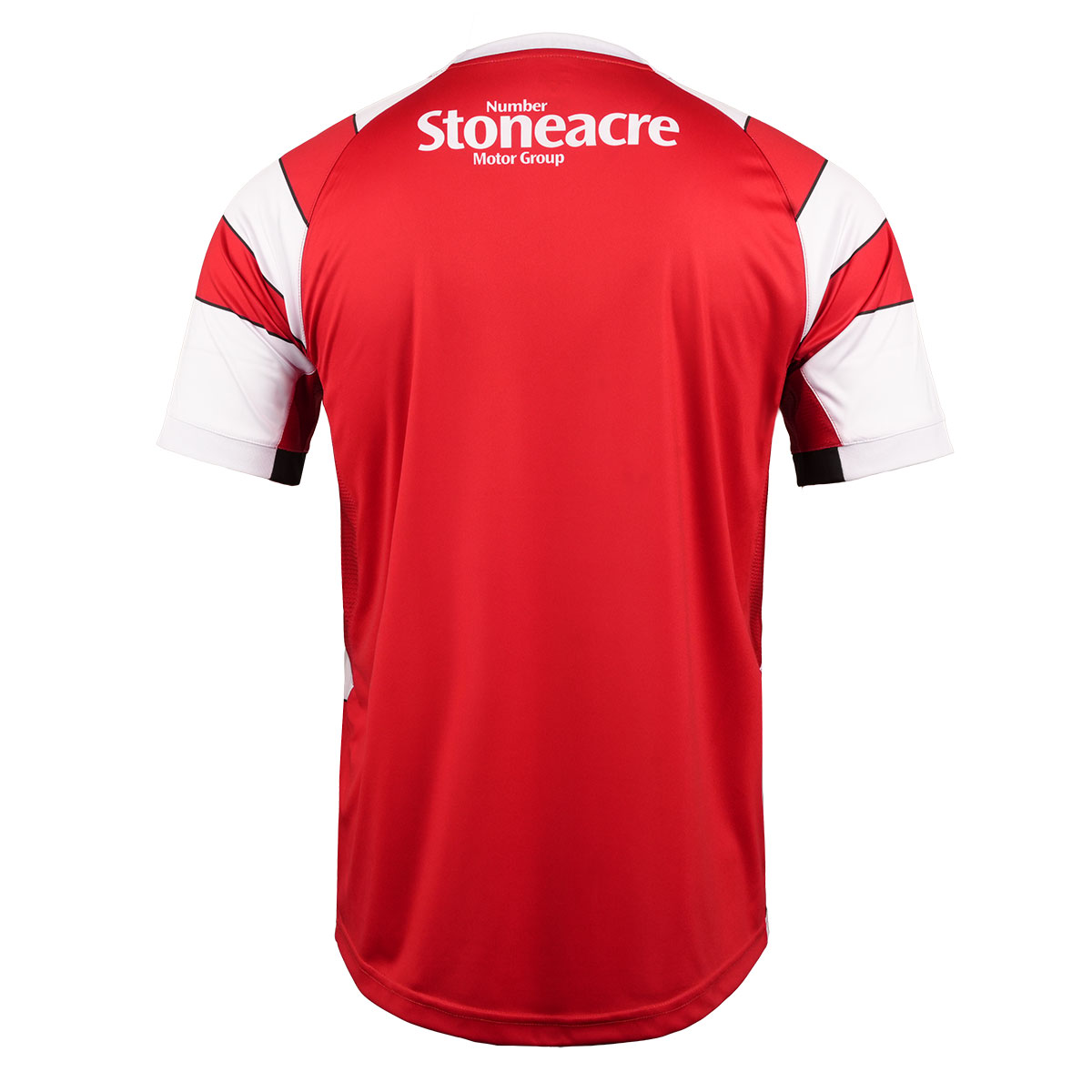 The shirt features the club’s traditional red and white hoops, complemented by a black trim on the front and a full red back panel to enhance the visibility of player names and numbers.
