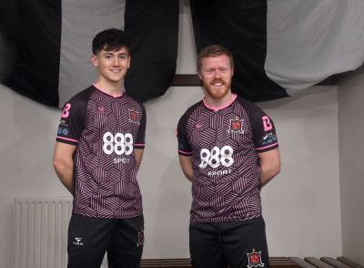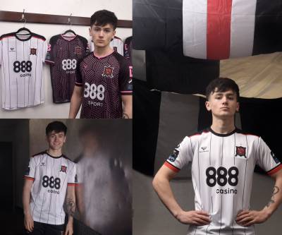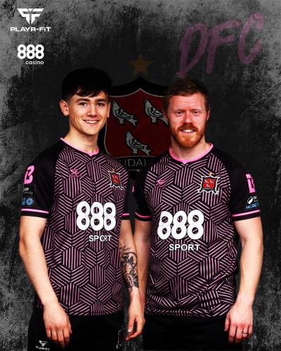 Carrying the branding of “Playr-fit”, the 2024 primary release for the SSE Airtricity League of Ireland Premier Division is white with black and red trim and black pinstripes, while the change is in black and pink with a honeycomb/hexagons pattern to the trunk.