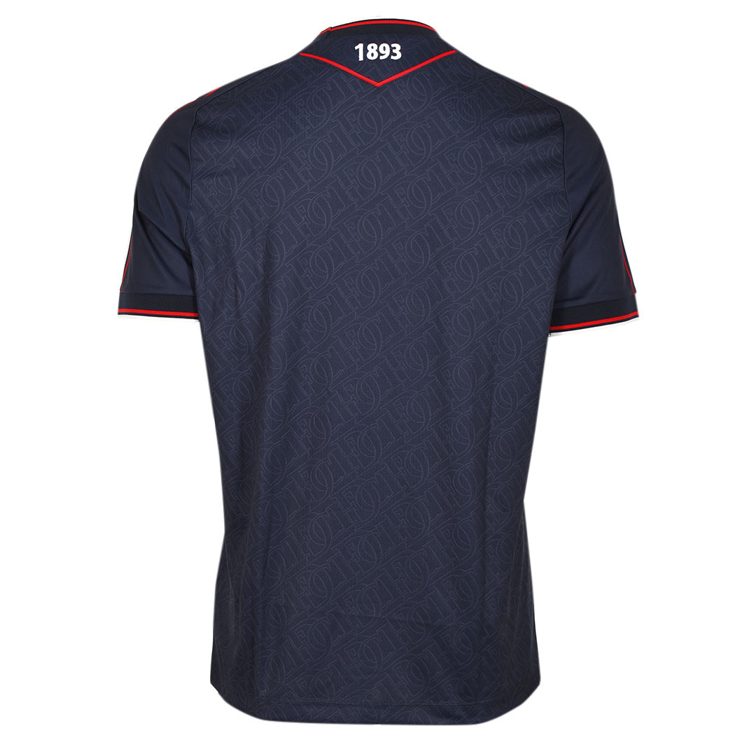 Additional details include a subtle tonal pattern of interlocking DFC monograms across the fabric and the year 1893 embroidered at the back of the neck, while red and white trim on the collar and sleeve cuffs completes the look.