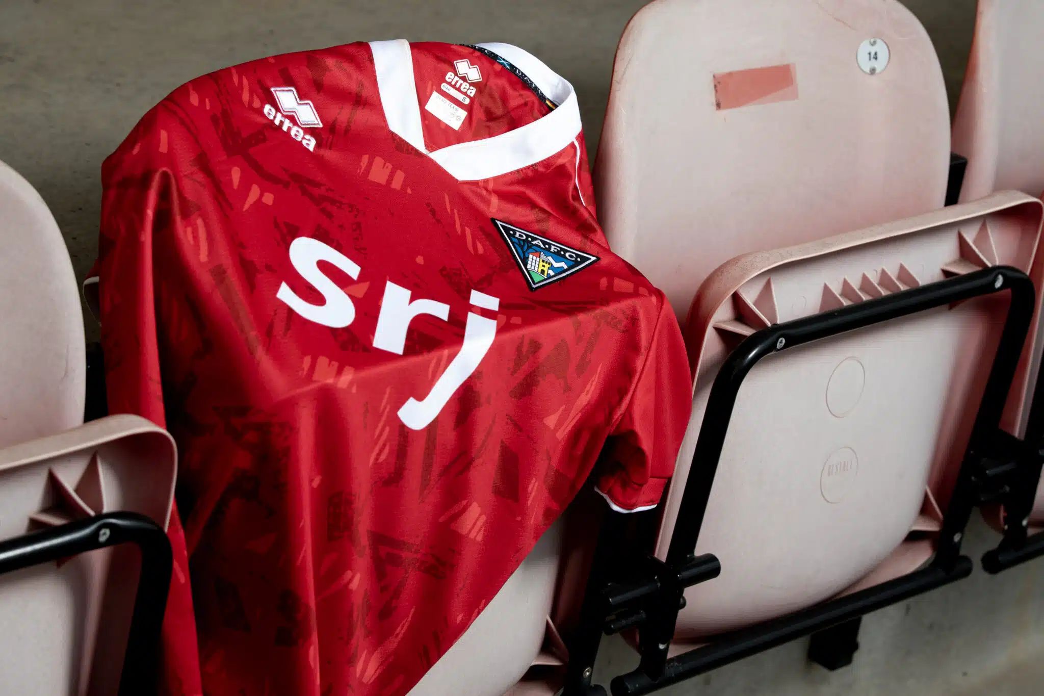 The newly unveiled design showcases a Pars woven badge, complemented by a white embroidered Errea logo and a freshly crafted SRJ sponsor logo.